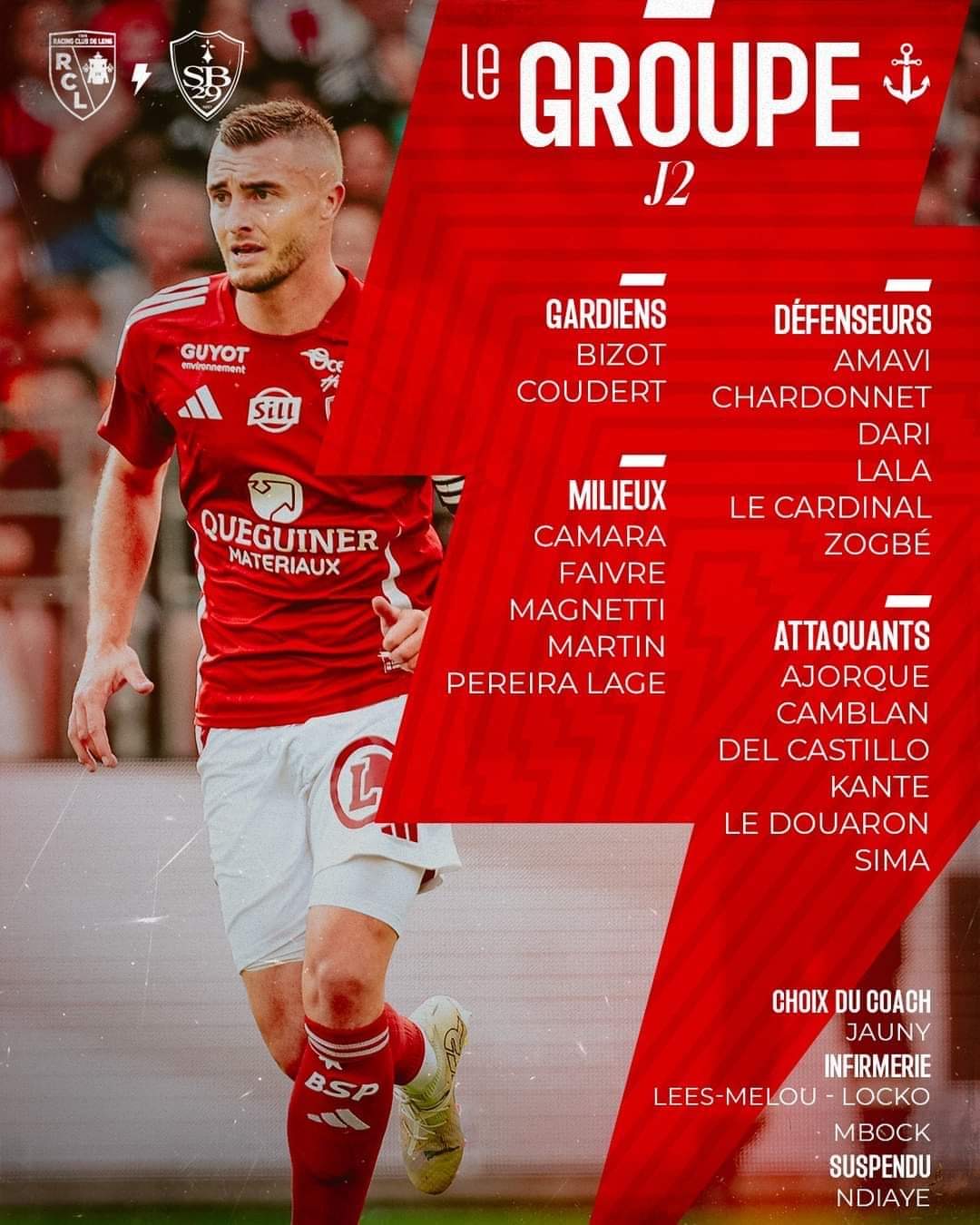 أعلن فريق بريست الفرنسي عن قائمته لمباراته أمام لانس المقرر لها غدا الأحد، ضمن منافسات الجولة الثانية من بطولة الدوري الفرنسي.