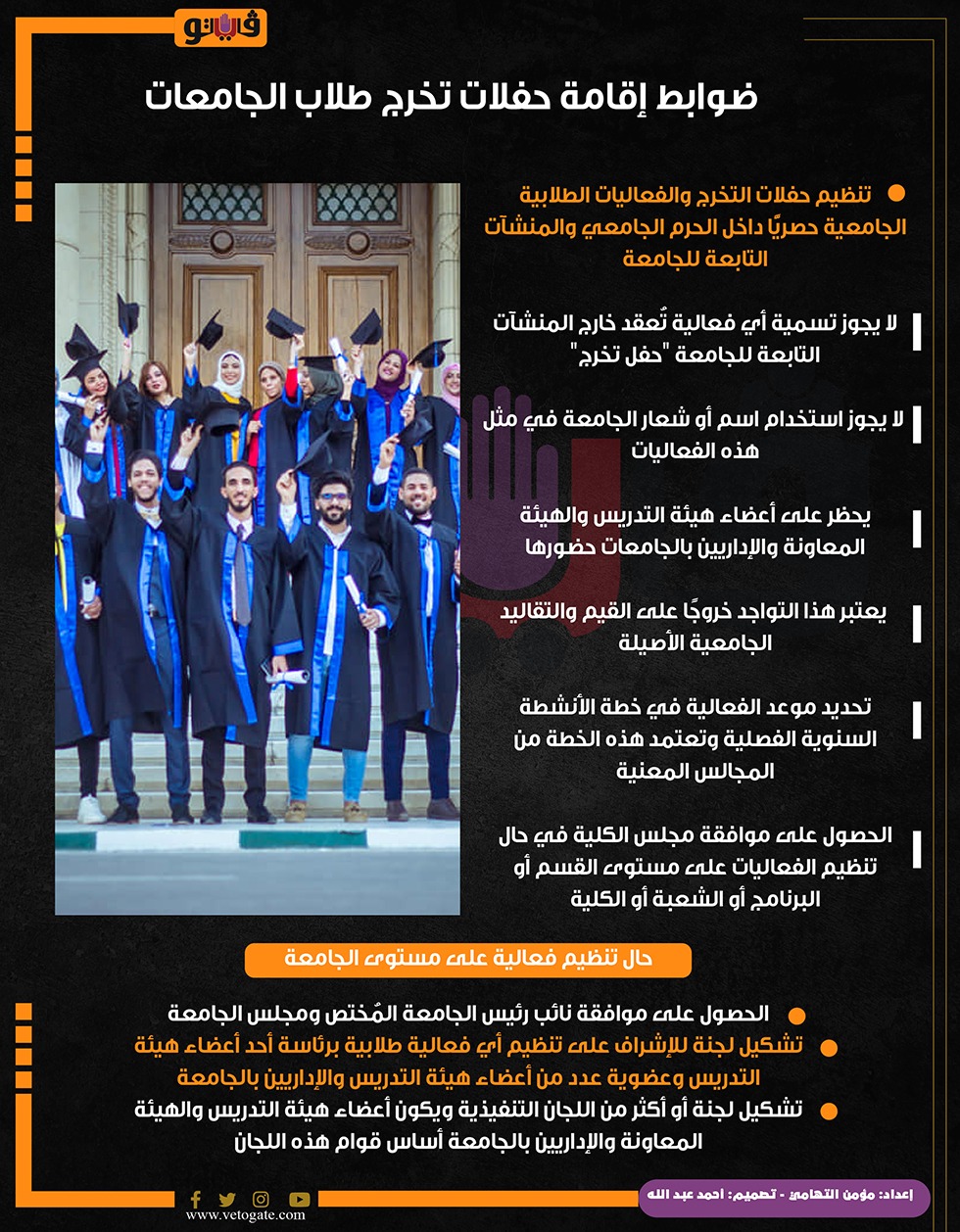 ضوابط إقامة حفلات تخرج طلاب الجامعات (إنفوجراف) الأحد 25/أغسطس/2024 - 12:03 م 8/25/2024 12:03:42 PM حفلات التخرج، فيتو - مؤمن التهامي شارك طباعة 18 حجم الخط شارك طباعة الاعلى للجامعات حفلات تخرج طلاب الجامعات الجامعات المصرية الحرم الجامعي حفلات التخرج