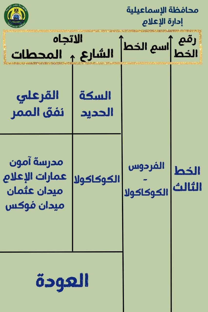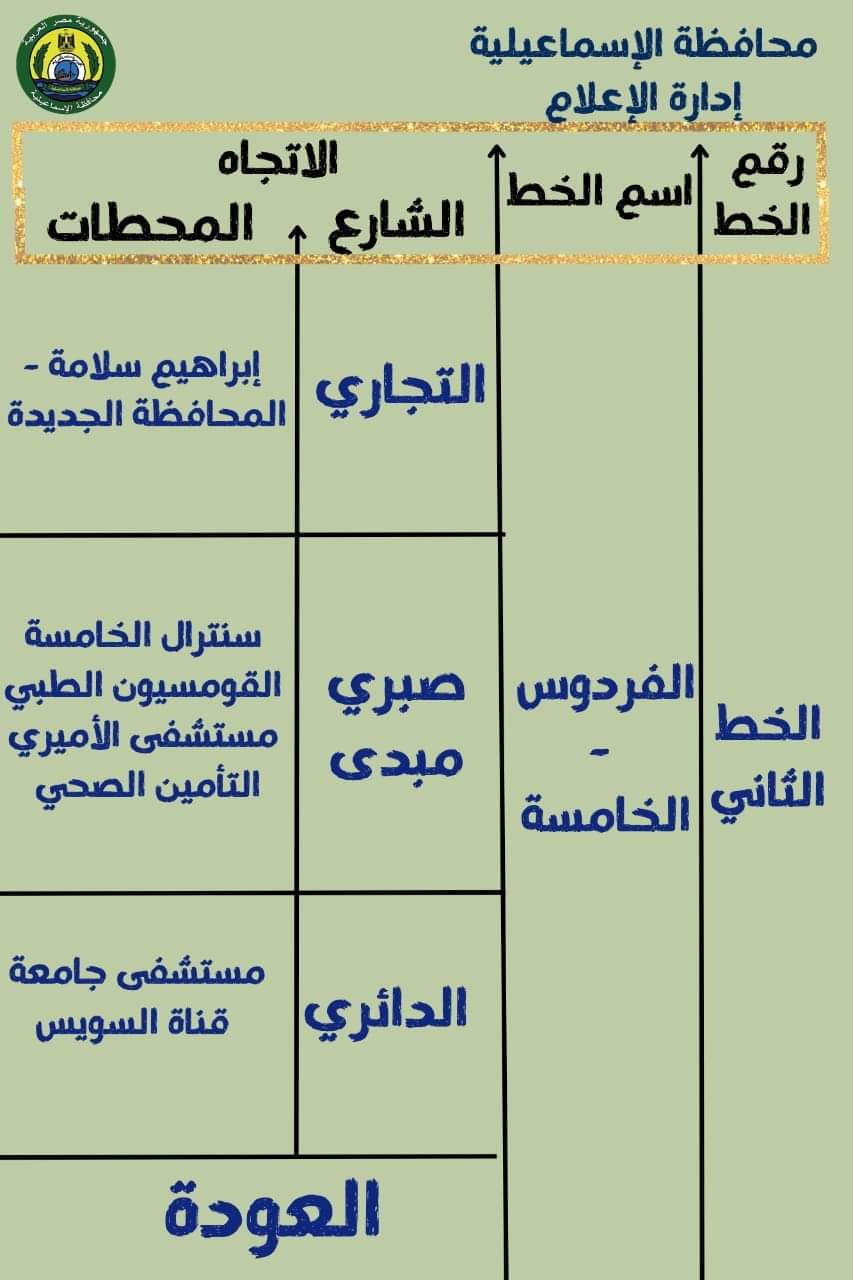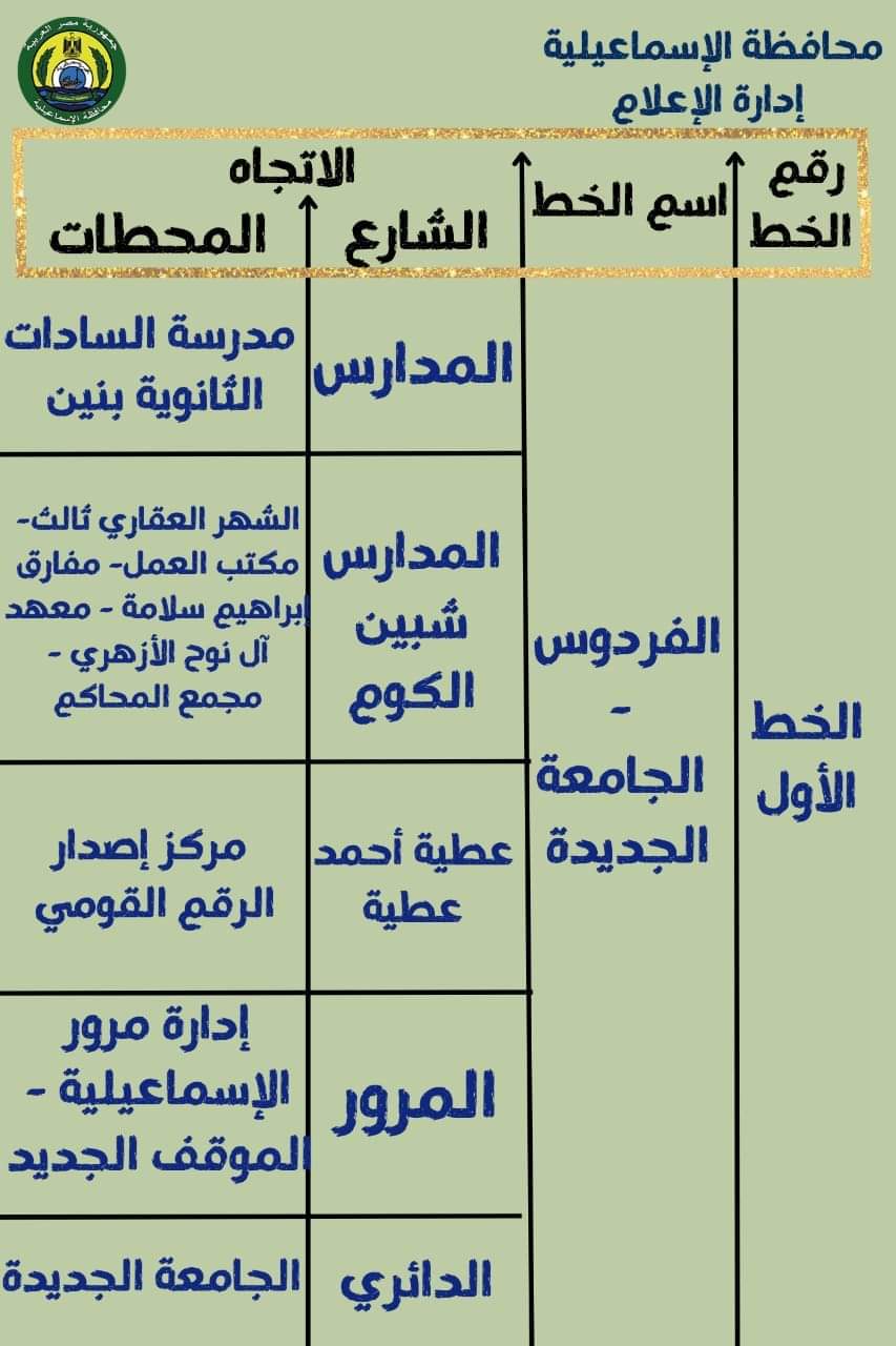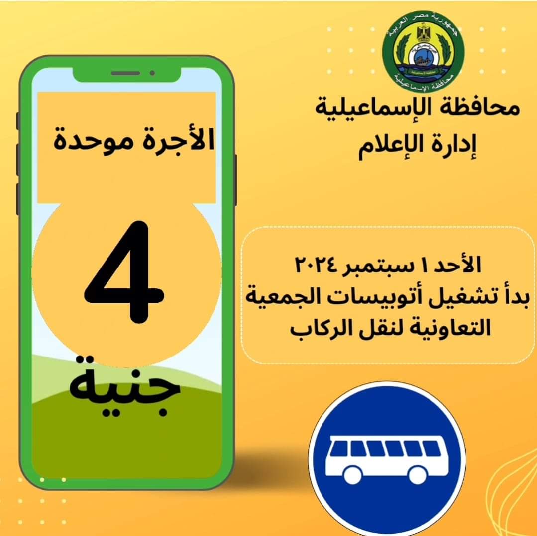 وقرر محافظ الإسماعيلية أن تكون الأجرة 4 جنيهات، على أن تكون البداية من أمام مدرسة السكة الحديد بجوار موقف الفردوس وسوق الجمعة.
