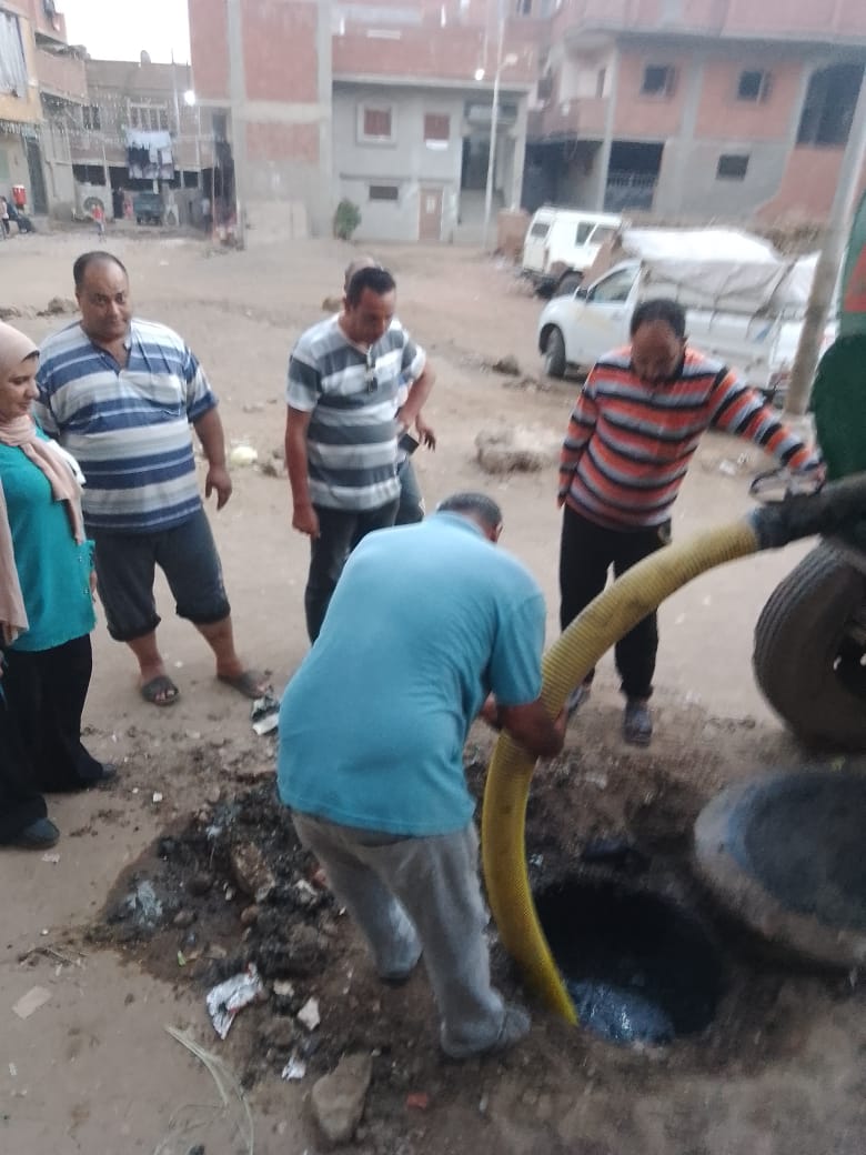 استجابة لشكوى المواطنين، تسليك وشفط مياه الصرف بقرية ميت ميمون في الغربية