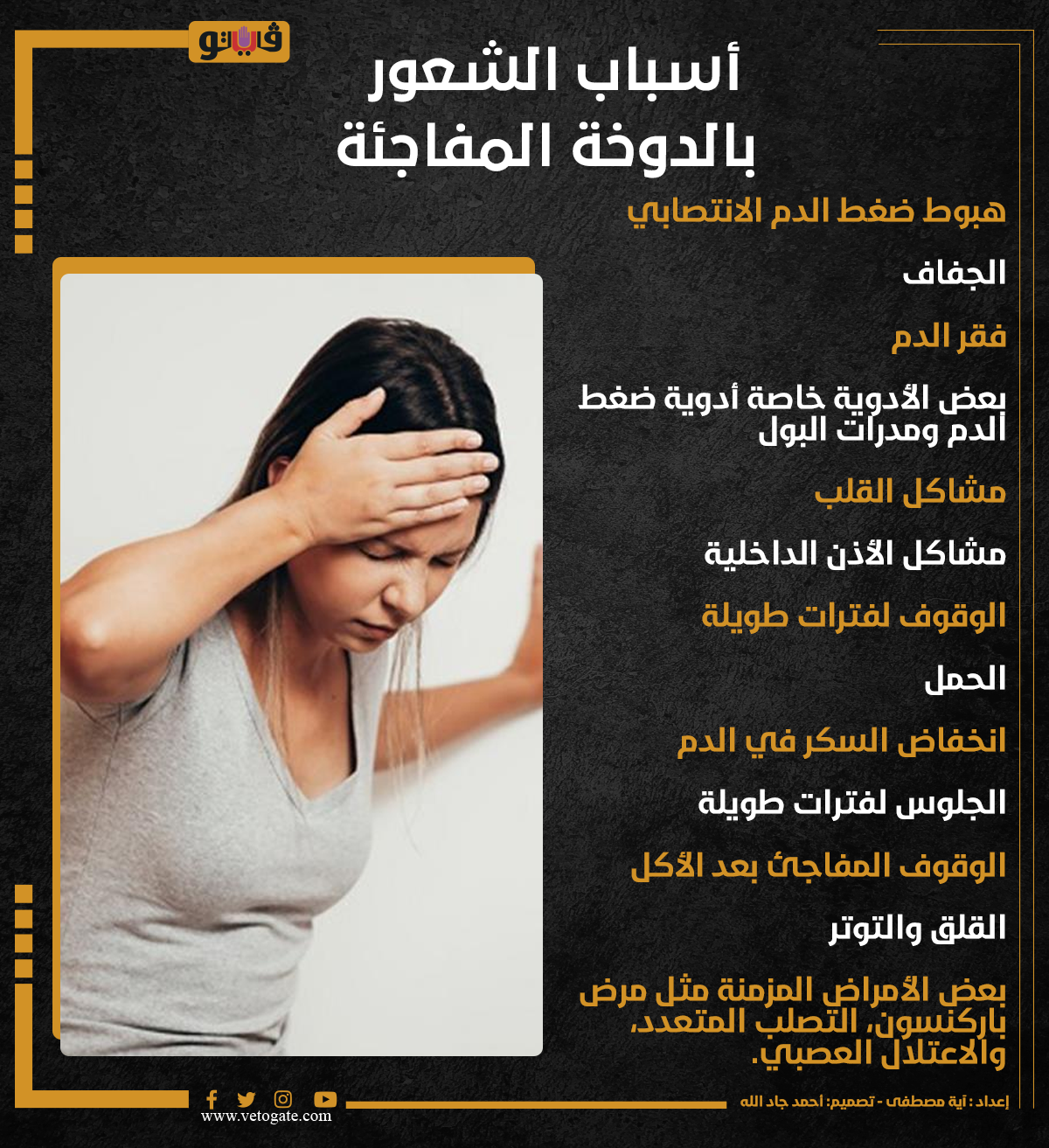 أسباب الشعور بالدوخة المفاجئة (إنفوجراف) الثلاثاء 27/أغسطس/2024 - 12:22 م 8/27/2024 12:22:35 PM الدوخة المفاجئة آية مصطفى شارك طباعة 18 حجم الخط شارك طباعة أدوية ضغط الدم الاعتلال العصبي ضغط الدم الانتصابي ضغط الدم مرض باركنسون مدرات البول مشاكل القلب انخفاض السكر في الدم