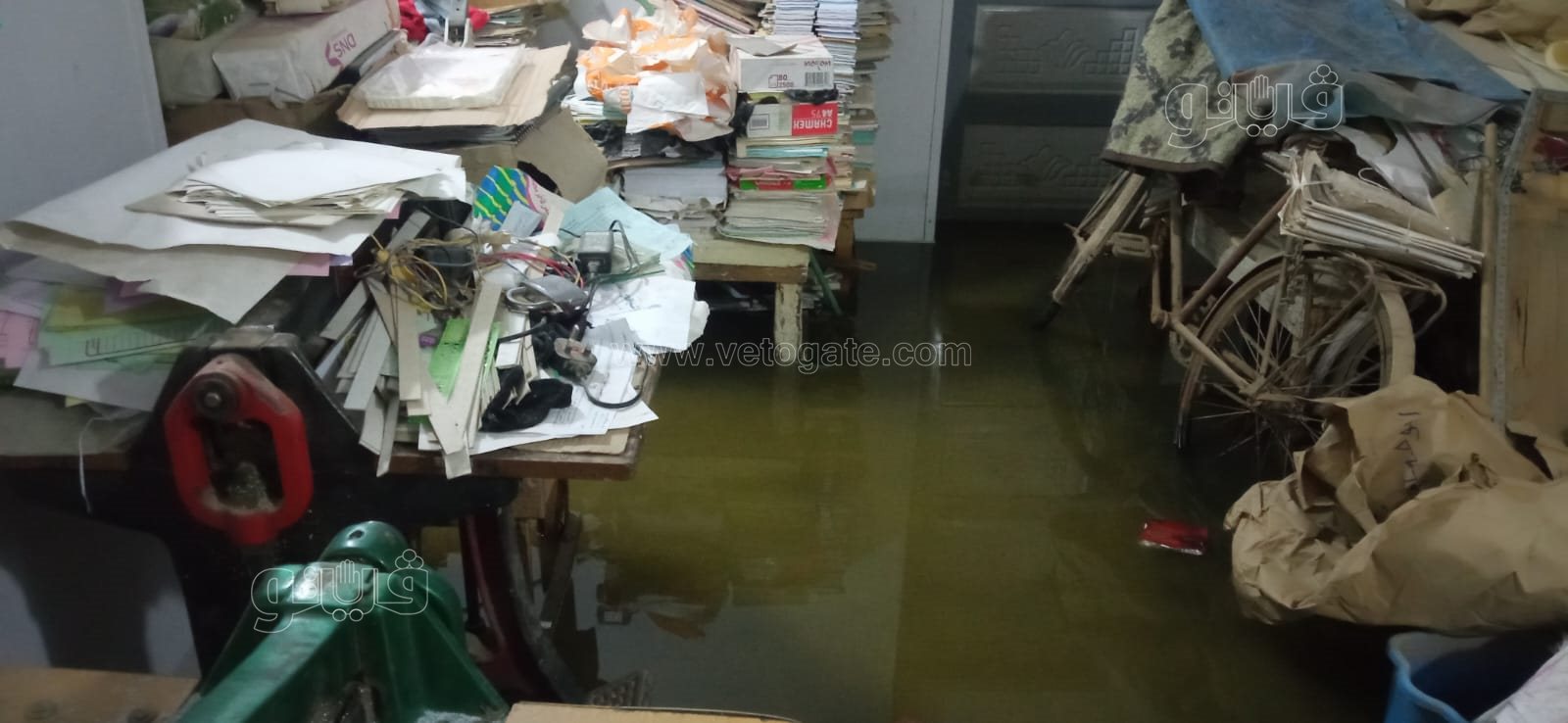 بضاعة بمليون جنيه، غرق محل مستندات تصوير بمياه الصرف الصحي بإسنا في الأقصر (صور)