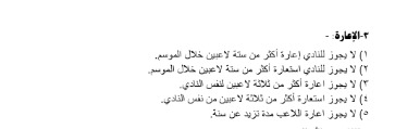 (1) لا يجوز للنادي عارة أكثر من ستة لاعبين خلال الموسم.