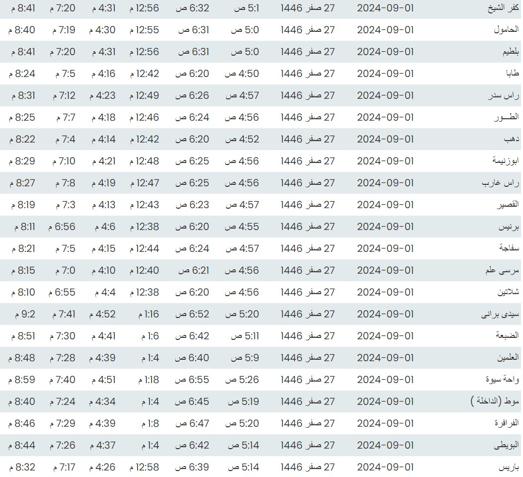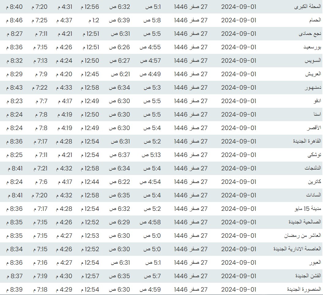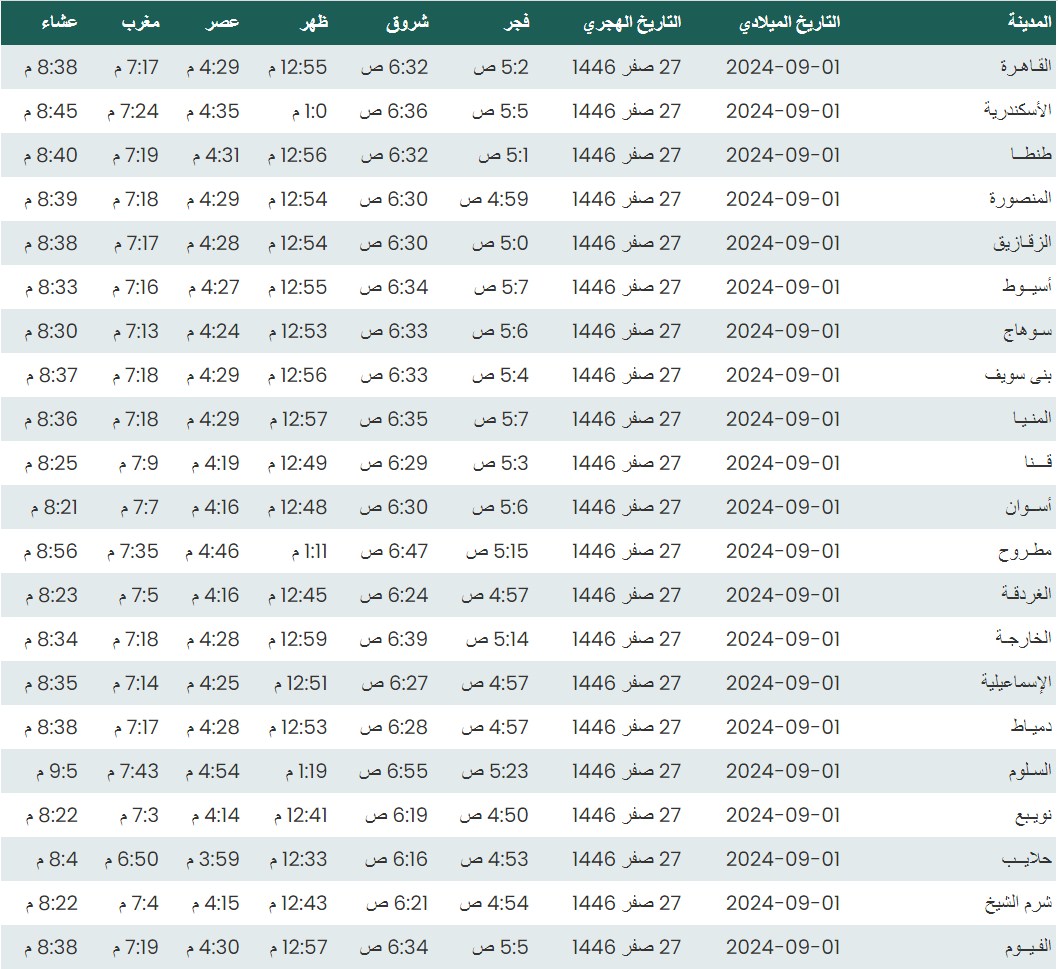 مواقيت الصلاة اليوم الأحد 1 - 9- 2024 في القاهرة والمحافظات