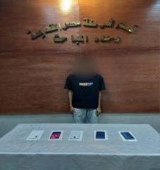 وضبط (عاطل) بدائرة قسم شرطة مصر القديمة لقيامه بمزاولة نشاطًا إجراميًا تخصص في سرقة الهواتف المحمولة "بأسلوب الخطف "باستخدام دراجة نارية" بدون لوحات معدنية تم ضبطها، وأقر بارتكاب عدد (5) وقائع سرقة بذات الأسلوب.