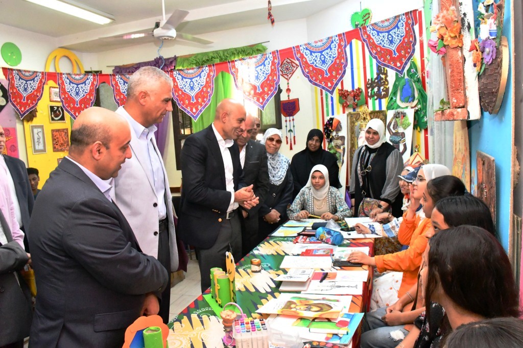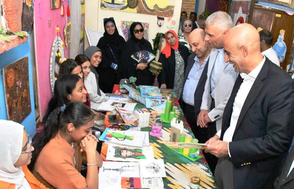 وفي مستهل الزيارة، قام الوزير والمحافظ بجولة تفقدية بمجمع مدارس العروبة التي تضم ٢٤١٣ طالبا وطالبة، حيث تفقدا عددا من الفصول الدراسية ومعروضات بعض الطلاب بغرفة التربية الفنية، وذلك فى إطار الأنشطة الصيفية، حيث أشاد الوزير بمهارات الطلاب والطالبات.