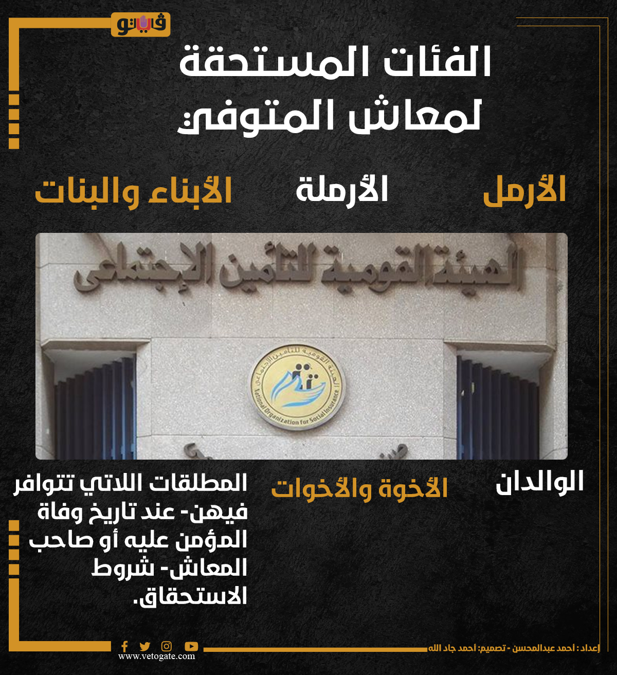 الفئات المستحقة لمعاش المتوفي (انفوجراف) الأربعاء 28/أغسطس/2024 - 03:50 م 8/28/2024 3:50:14 PM الهيئة القومية للتأمينات، فيتو أحمد عبدالمحسن شارك طباعة 18 حجم الخط شارك طباعة الارملة صاحب المعاش معاش المتوفي وفاة المؤمن المؤمن علية المتوفى المطلقات