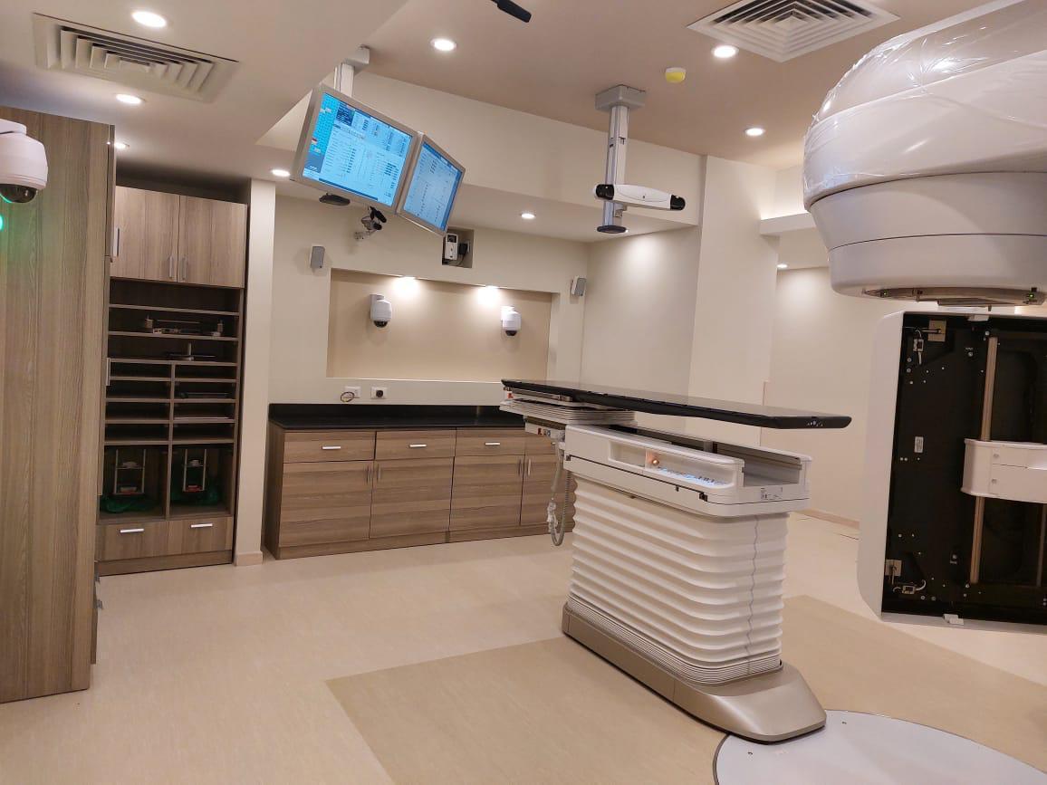 وأشار الدكتور أشرف شومة أن جهاز المعجل الخطى هو أحدث جهاز مستخدم في تنفيذ خطة العلاج الإشعاعي التي تم تحديدها باستخدام جهاز التخطيط الإشعاعي ثلاثي الأبعاد، عن طريق استخدام الأشعة السينية عالية الطاقة لقتل الخلايا السرطانية حيث يتم ذلك عن طريق إرسال البيانات الخاصة بالخطة العلاجية إلى جهاز المعجل الخطي مع تقييم أسبوعي لمسار الخطة العلاجية ومطابقتها لما تم التخطيط له بدقة، والجهاز مزود بجدران سميكة طبقا للمواصفات القياسية العالمية لمنع نفاذ الأشعة الضارة خارج نطاق غرفة العلاج، كما أنه مزود بكاميرا لمراقبه المريض أثناء الجلسات العلاجية ويعالج أكثر من 100 مريض يوميا.