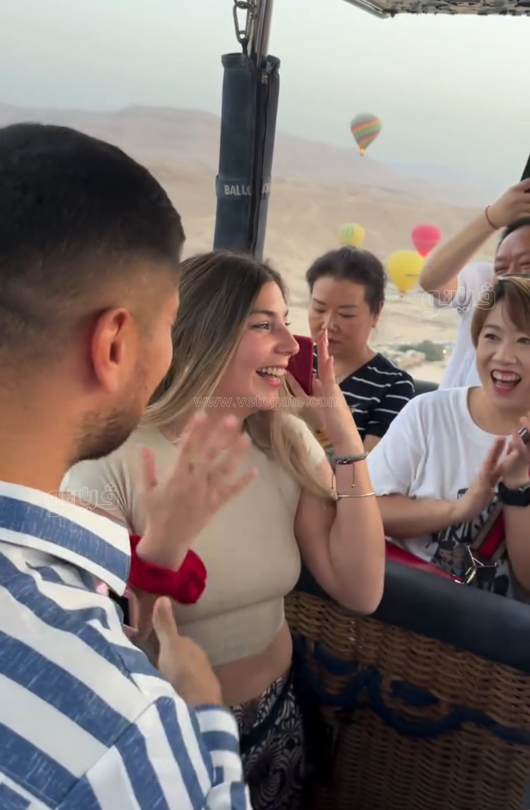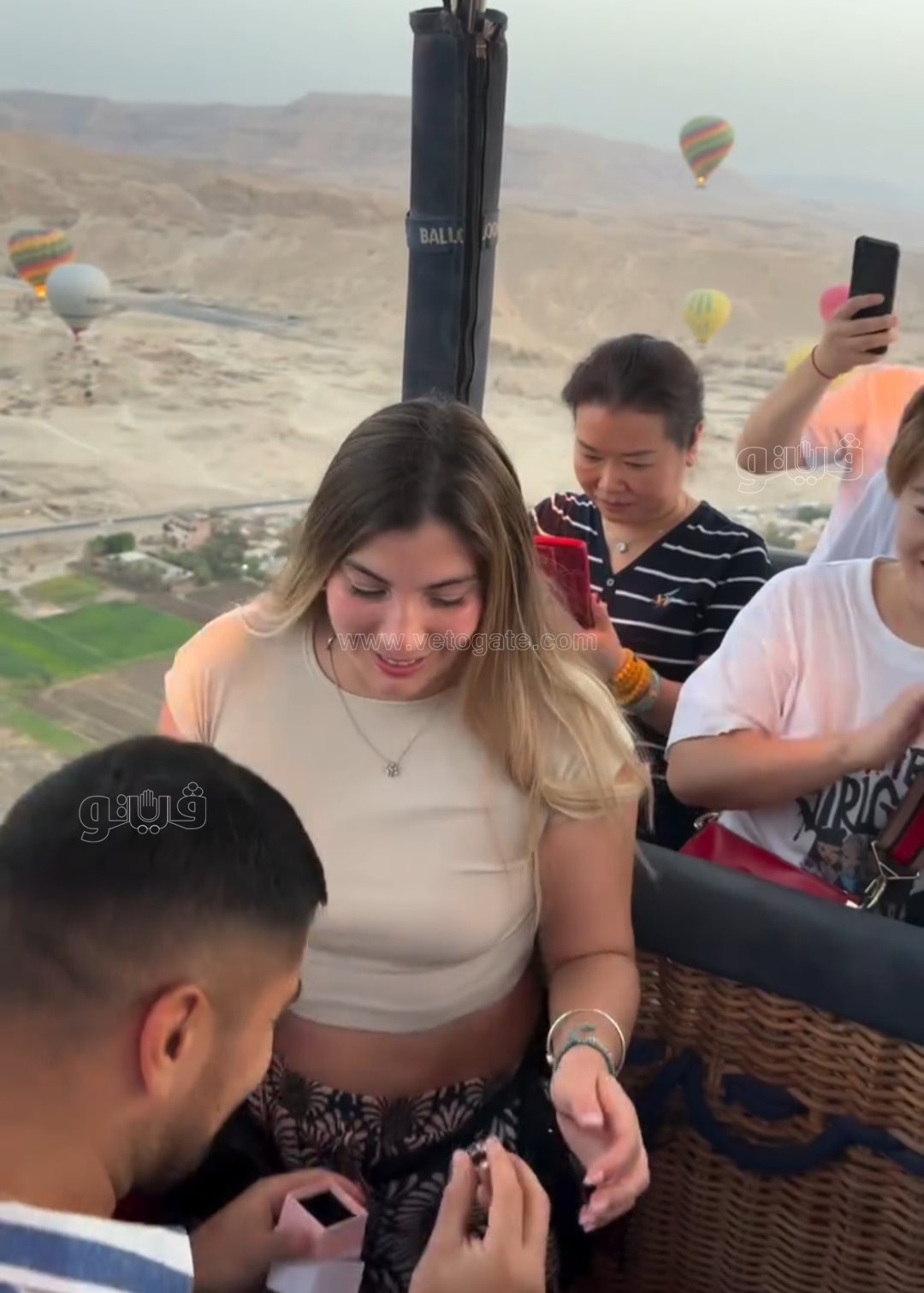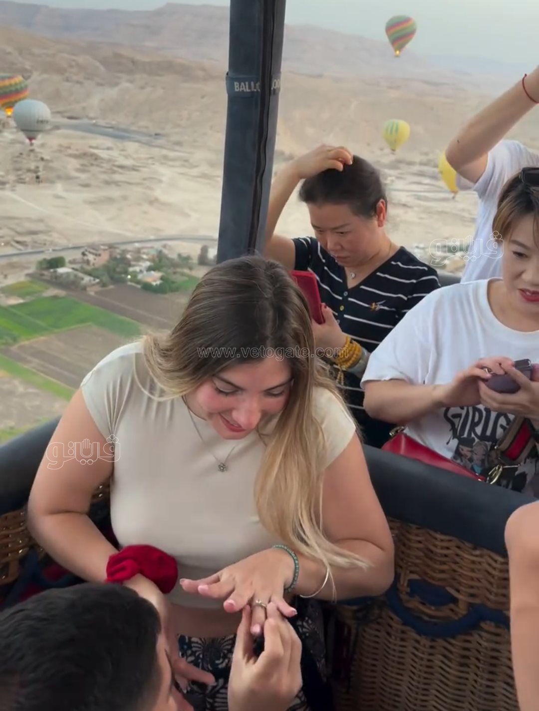 بين السماء والأرض، وعلى ارتفاع شاهق، على متن رحلة البالون الطائر في الأقصر، أقدم سائح تشيلي الجنسية على تقديم «خاتم الخطوبة» إلى صديقته بشكل مفاجئ، وسط أجواء من الفرحة والسعادة بين السائحين الآخرين.