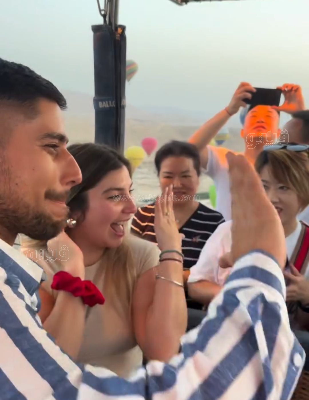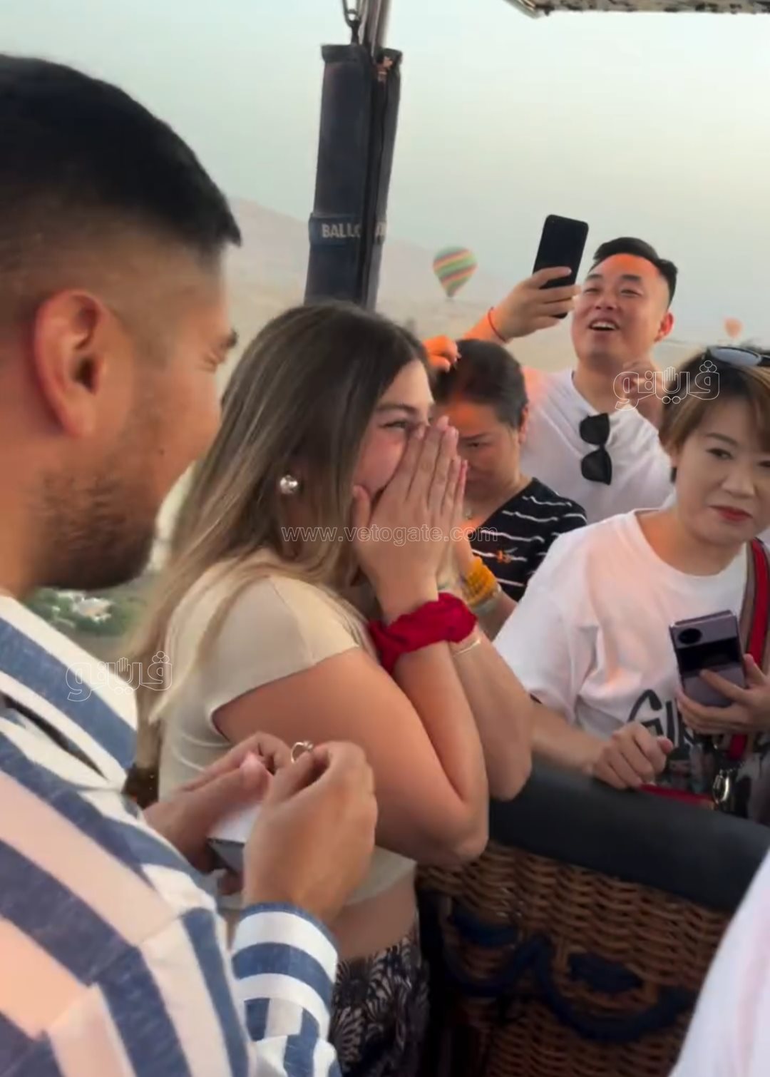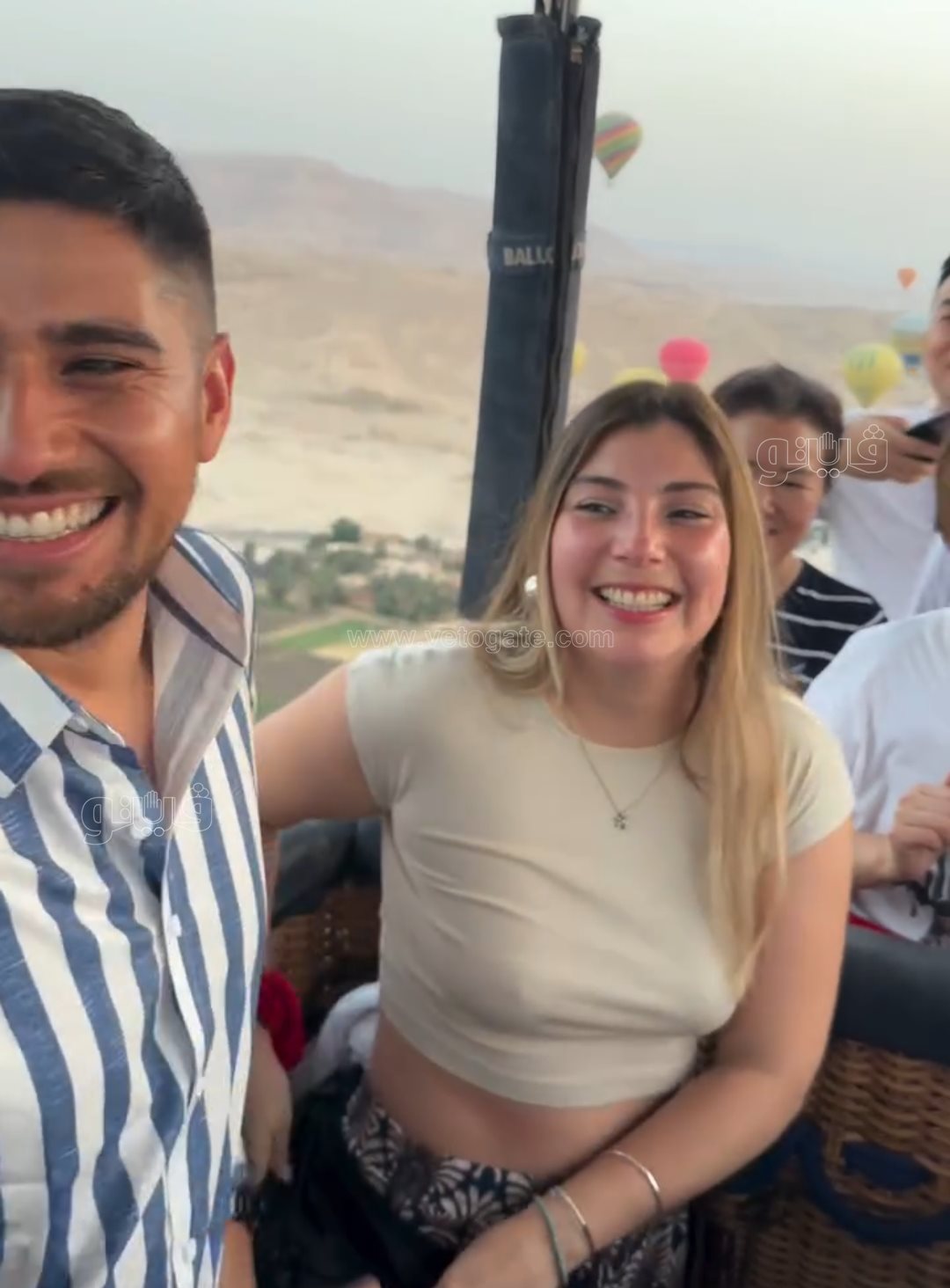 بين السماء والأرض، وعلى ارتفاع شاهق، على متن رحلة البالون الطائر في الأقصر، أقدم سائح تشيلي الجنسية على تقديم «خاتم الخطوبة» إلى صديقته بشكل مفاجئ، وسط أجواء من الفرحة والسعادة بين السائحين الآخرين.