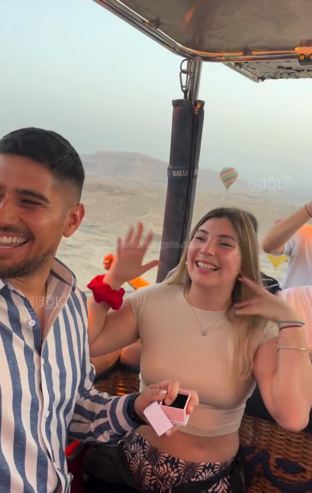 وأكد الطيار محمد عشري قائد رحلة منطاد جلاكسي، لـ بوابة «فيتو» أنه صباح اليوم الخميس أقلعت رحلة البالون الطائر، لمشاهدة آثار المدينة الفرعونية وقراءة التاريخ من السماء، وفي منتصف الرحلة، أخرج سائح تشيلي الجنسية خاتم الخطوبة من جيبه، وفاجأ صديقته، وقام بتلبيسه لها في إصبعها منحنيا على الأرض، وسط اندهاشها من المفاجأة غير المتوقعة، وتقبلت منه الخطوبة.