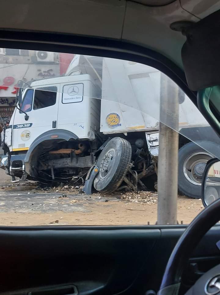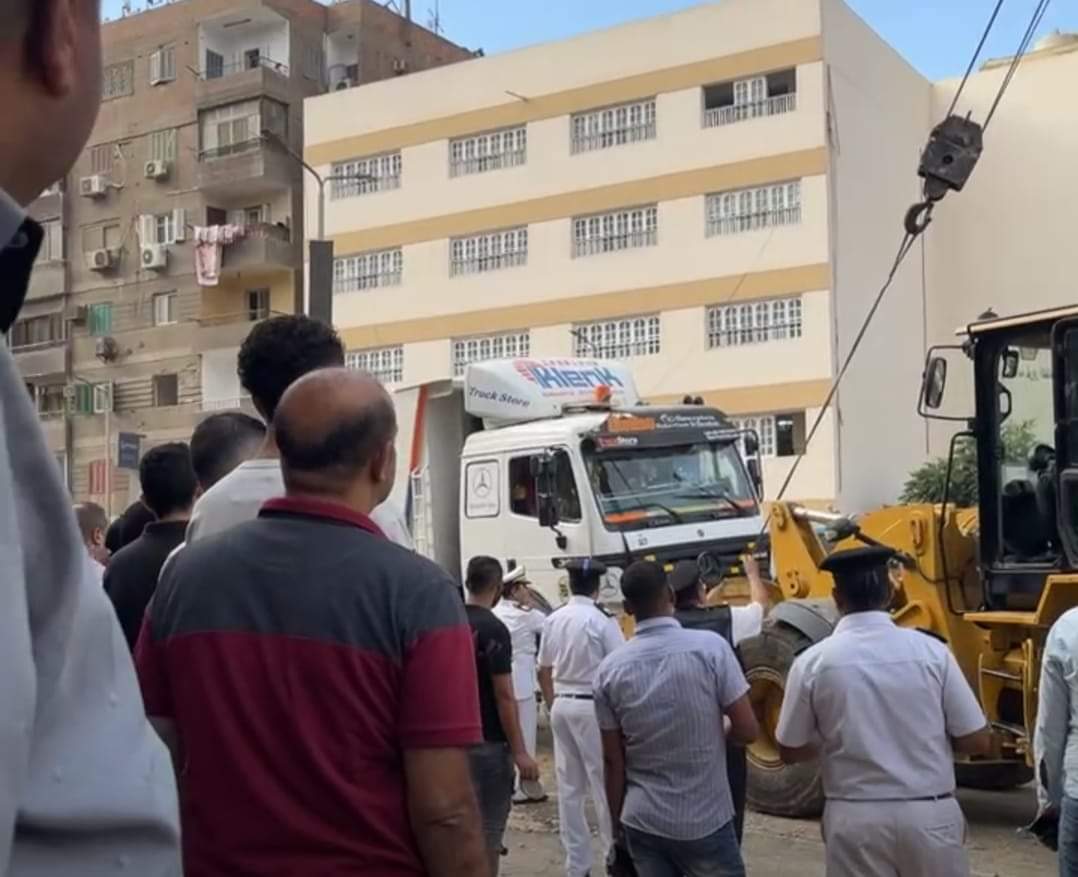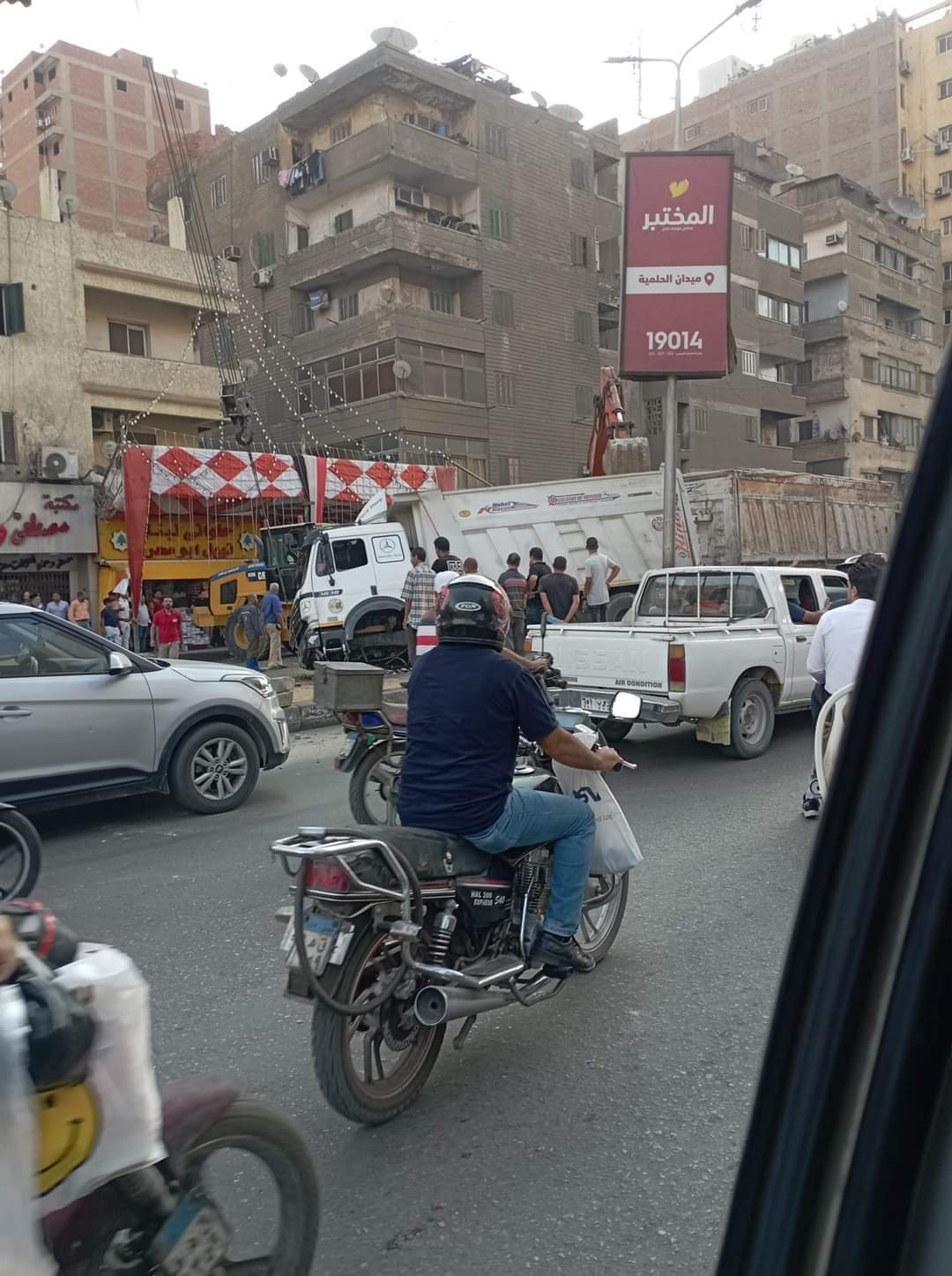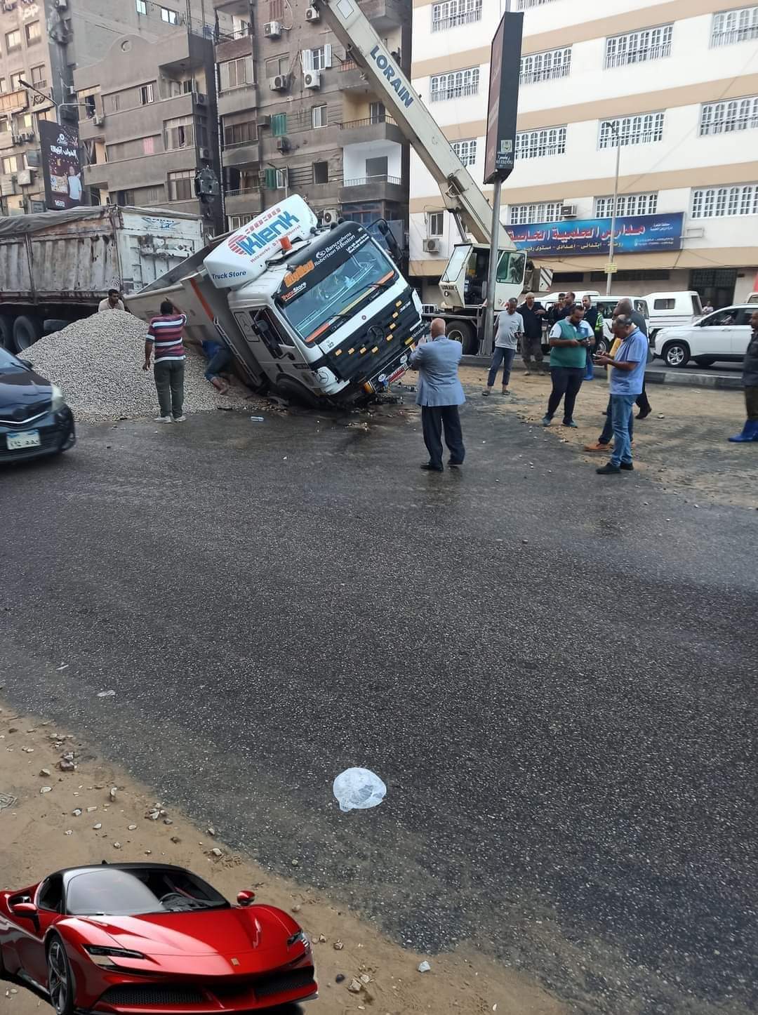إغلاق مؤقت لطريق التجنيد في الحلمية بسبب انقلاب تريلا وهبوط أرضي (صور)
