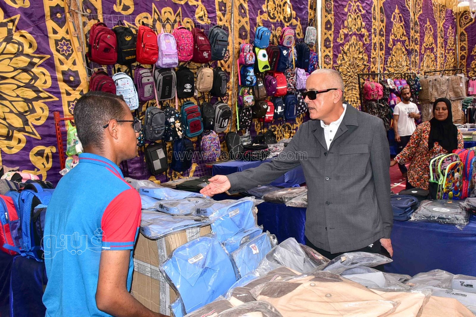 واستمع محافظ الأقصر لشرح مفصل عن المعرض الذى يضم نحو 10 عارضين ومقام على مساحة 350 مترا، ويضم مختلف المستلزمات المدرسية من شنط وأحذية وزى مدرسي لمختلف المدارس وكتب خارجية مخفضة.