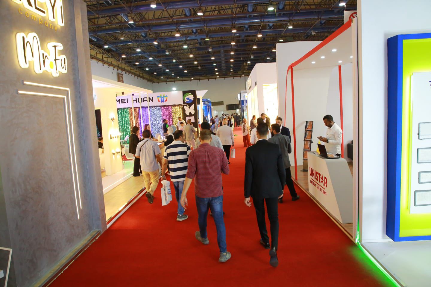 يشمل المعرض أحدث تقنيات الإضاءة مثل تكنولوجيا الليد، نظم الإضاءة الحديثة والديكورية، والمكونات الإلكترونية.