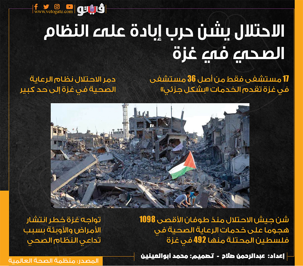 الاحتلال يشن حرب إبادة على النظام الصحي في غزة (انفوجراف) السبت 31/أغسطس/2024 - 09:54 ص 8/31/2024 9:54:08 AM مستشفيات غزة، فيتو عبدالرحمن صلاح شارك طباعة 18 حجم الخط شارك طباعة غزة الرعاية الصحية في غز فلسطين فلسطين المحتلة الامراض والأوبئة انتشار الأمراض والأوبئة منظمة الصحة العالمية