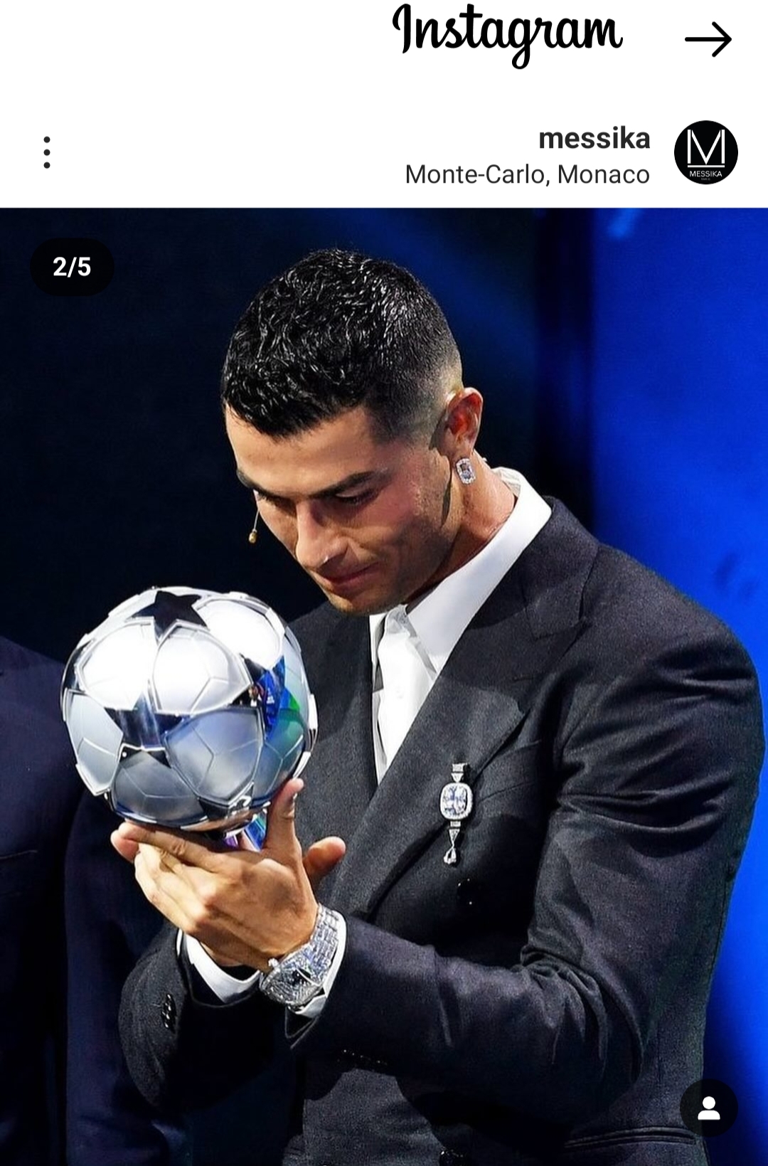 ونشرت إحدى أكبر العلامات التجارية للمجوهرات عبر حسابها بموقع انستجرام بيانًا تفصيليًا بالمجوهرات التي ارتداها رونالدو في الحفل.