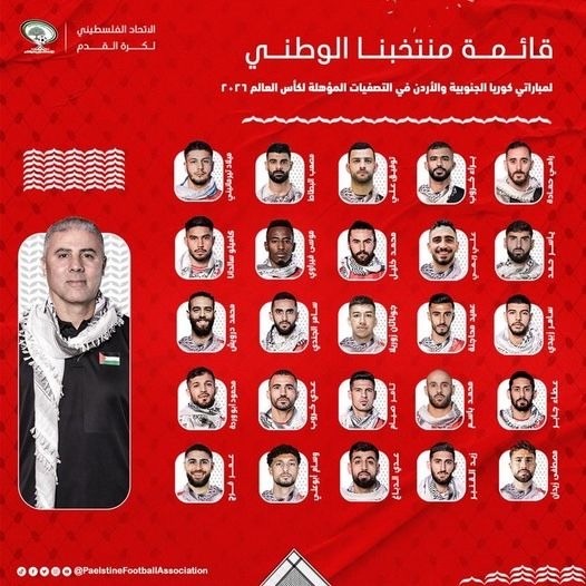 أعلن مكرم دبوب المدير الفني لمنتخب فلسطين عن قائمة فريقه، استعدادا لمباراتي كوريا الجنوبية والأردن في التصفيات المؤهلة كأس العالم 2026.