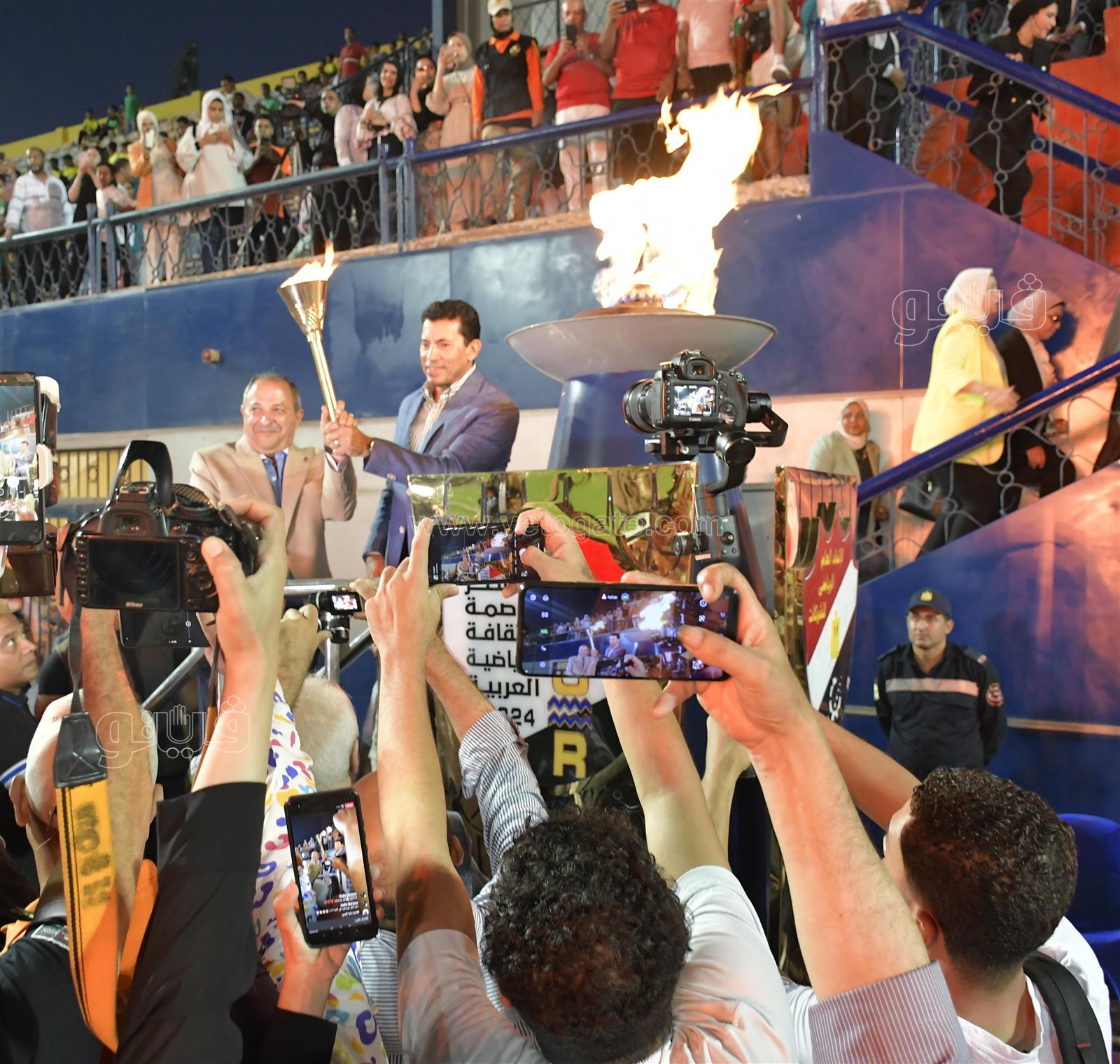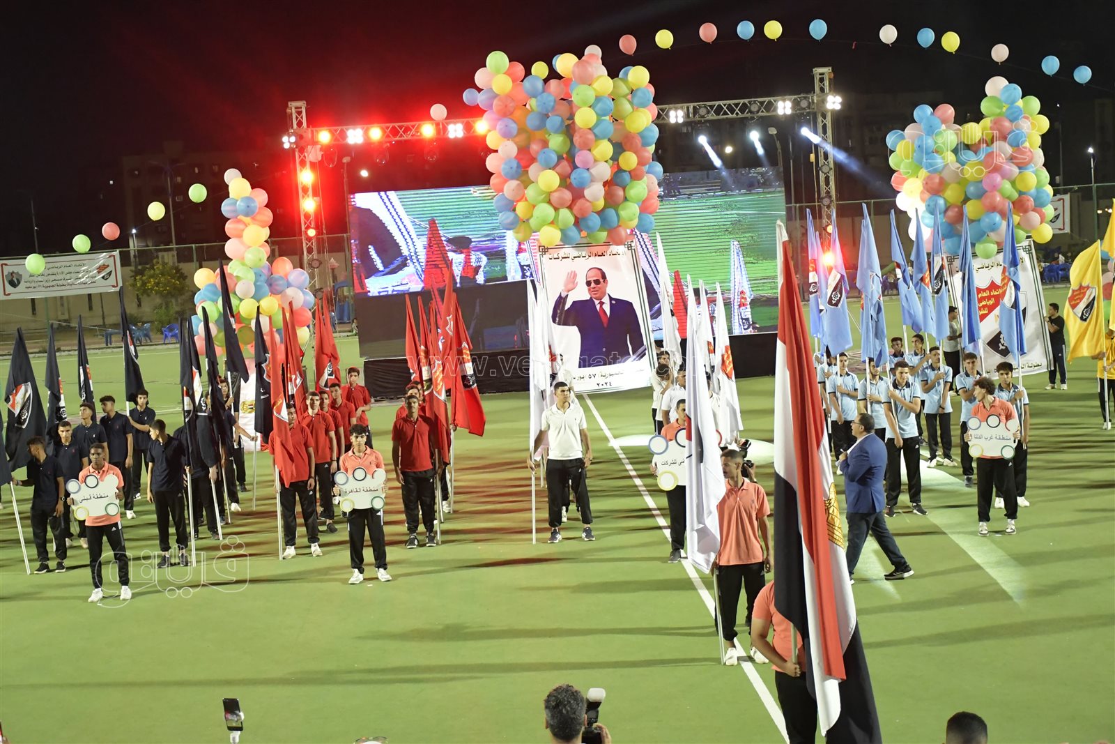 وشهد حفل الافتتاح فعاليات مبهجة على درجة عالية من التنظيم، وتم تعليق أعلام مصر الضخمة، بجانب تعليق رايات الزينه حول المدخل الرئيسي للمدينة الرياضية ببورسعيد.