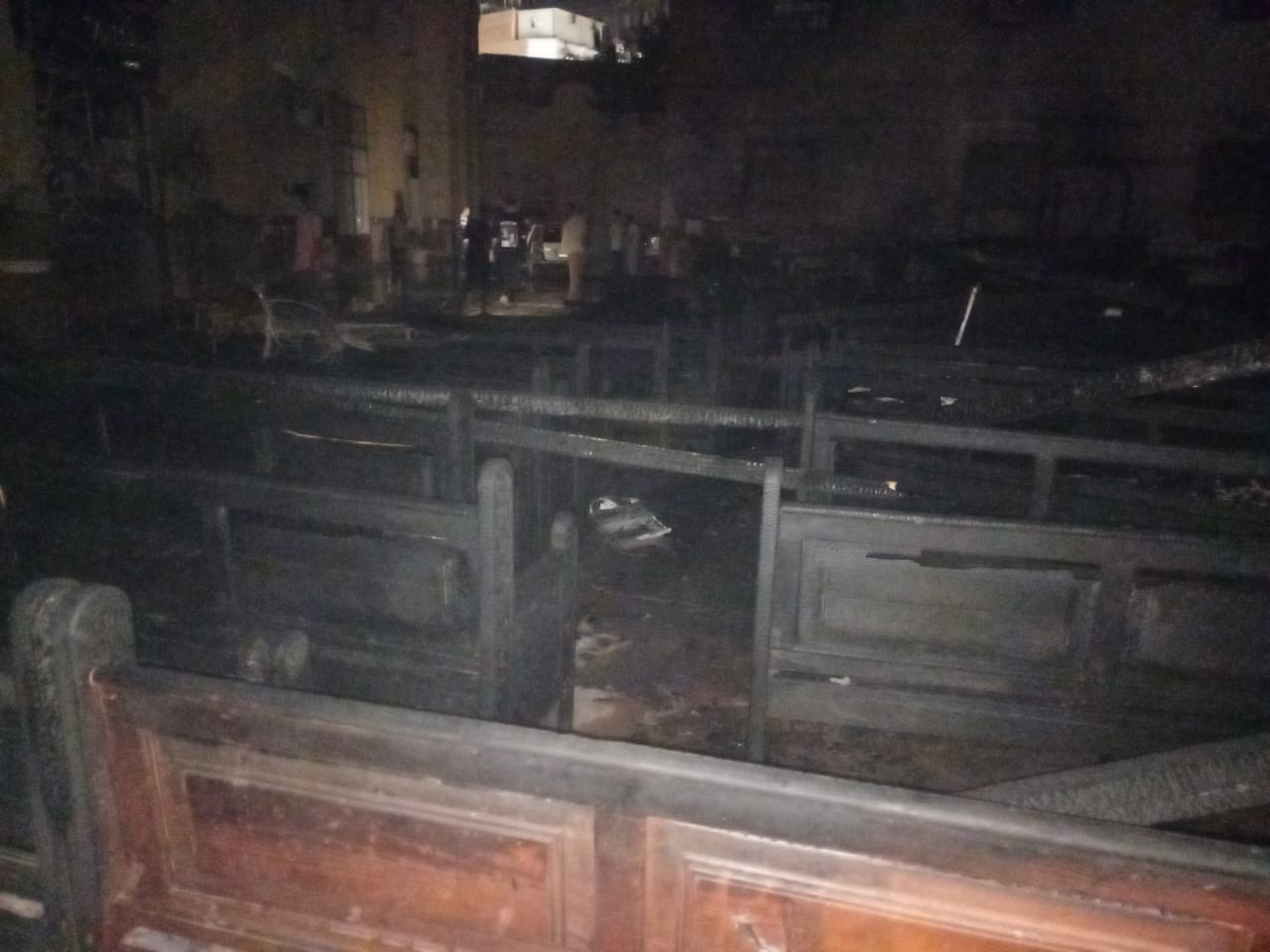 وأظهرت الصور أن النيران أتت على محتويات وأثاثات مبنى الخدمات بالكنيسة "غرفة الصلوات" وجلسات الوعظ والقداسات، كما أتت النيران على نوافذ وجدران الطابق الأرضي بالكنيسة التي تقع بالقرب من منطقة ميدان الحمام بوسط مدينة بني سويف.