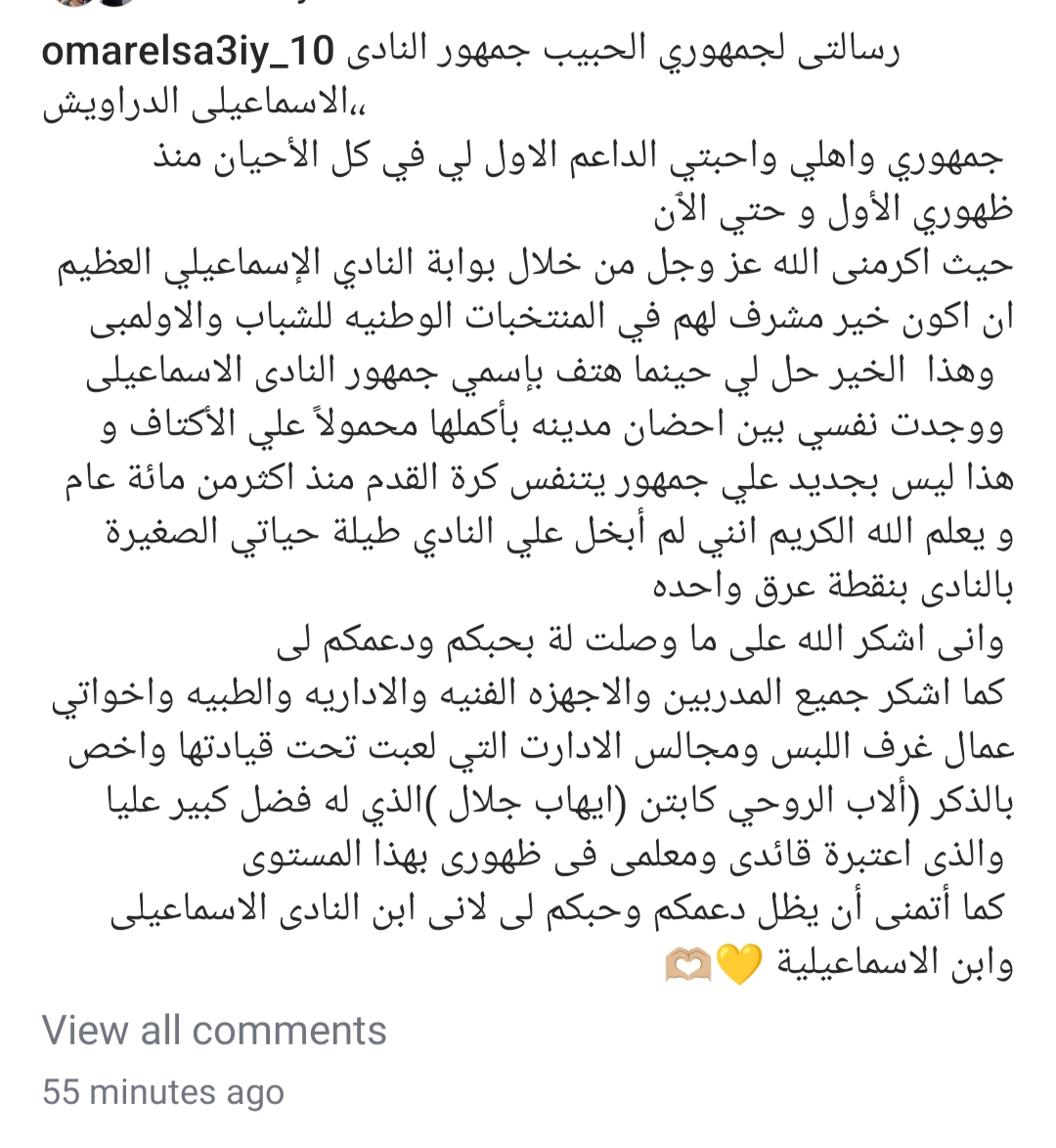 الأهلي، وجه عمر الساعي لاعب الإسماعيلي المنضم حديثا إلى صفوف النادي الأهلي رسالة إلى جماهير ناديه بعد إتمام صفقة انتقاله إلى القلعة الحمراء، وجاءت على النحو التالي: