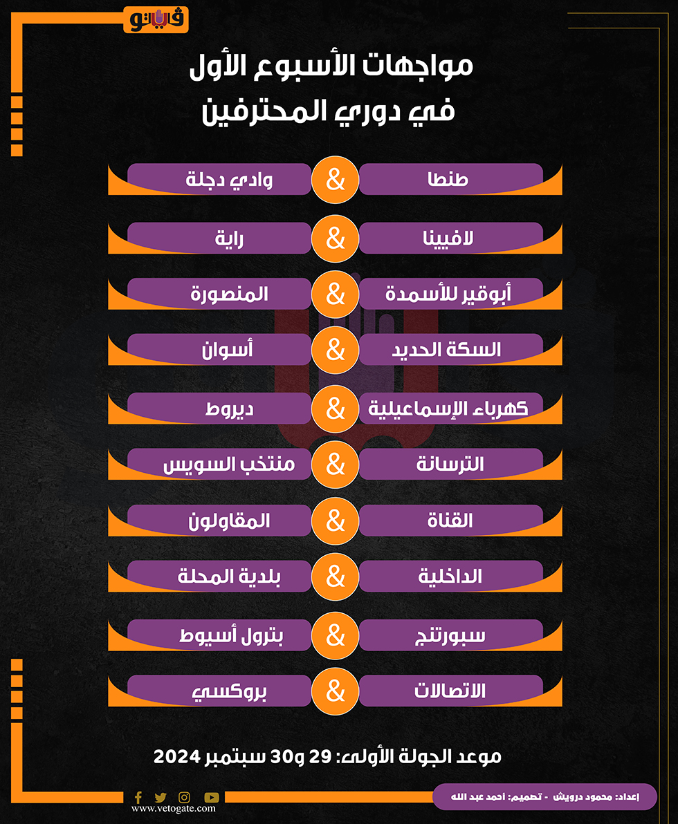 مواجهات الأسبوع الأول في دوري المحترفين (إنفوجراف) الإثنين 02/سبتمبر/2024 - 10:26 ص 9/2/2024 10:26:25 AM دوري المحترفين، فيتو محمود درويش شارك طباعة 18 حجم الخط شارك طباعة دوري المحترفين قرعة دوري المحترفين القناة المقاولون الداخلية بلدية المحلة سبورتنج بترول أسيوط الاتصالات بروكسي طنطا