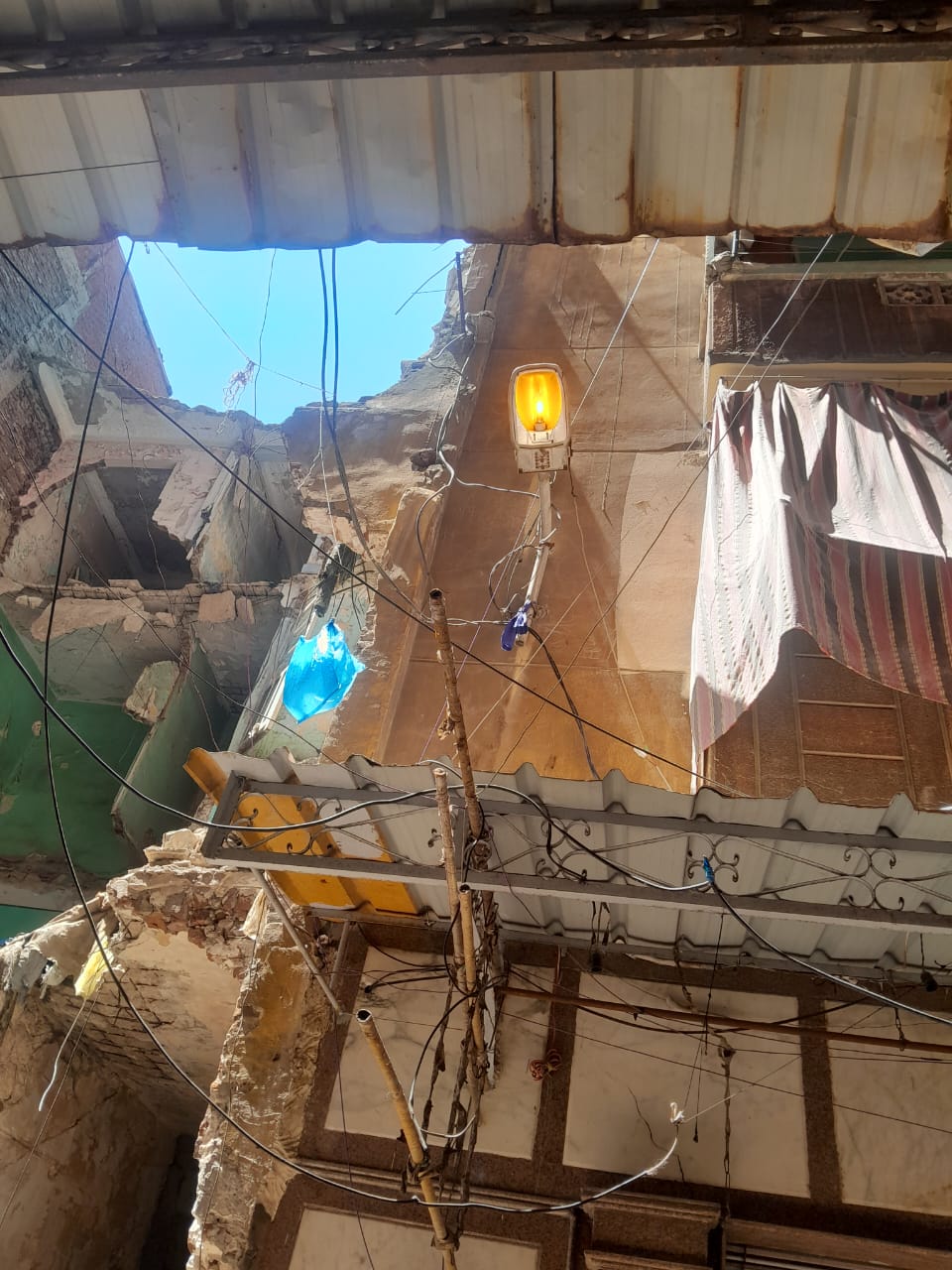 وتوجهت قيادات الحي بصحبة قوة أمنية وقوات الحماية المدنية، وتبين انهيار سلم عقار قديم مكون من 5 أدوار واحتجاز 5 اشخاص بالدور ال 5 جري انقاذهم بمعرفه الحماية المدنية دون إصابات أو خسائر بشرية، جري وضع حواجز حديدية حول العقار.