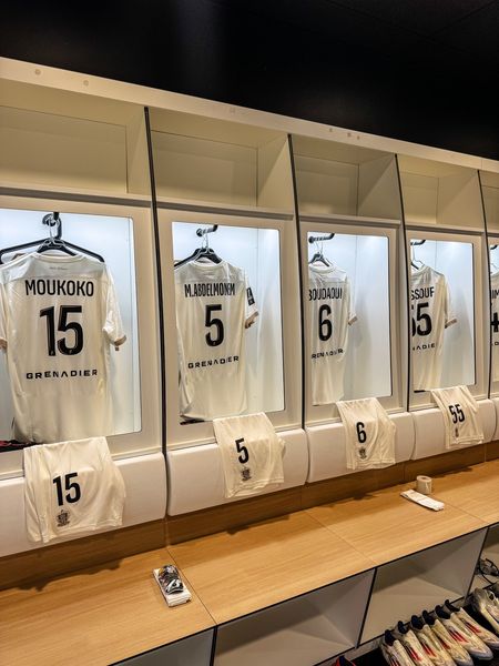 زين قميص محمد عبد المنعم المحترف في صفوف فريق نيس الفرنسي غرفة ملابس فريقه قبل مباراته أمام أنجيه المقرر لها اليوم الأحد في الجولة الثالثة من الدوري الفرنسي.