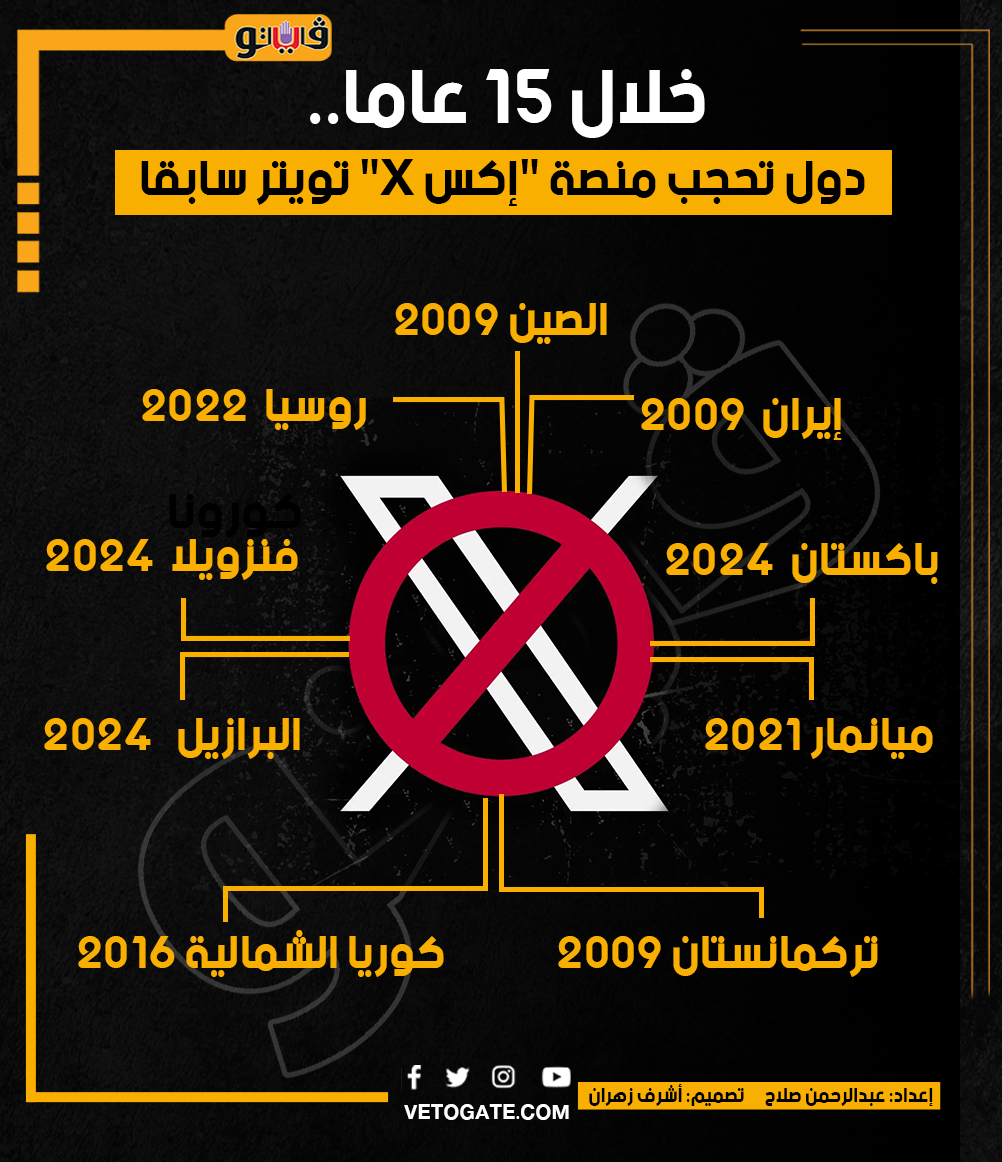 خلال 15 عاما.. دول تحجب منصة "إكس X" تويتر سابقا ( انفوجراف ) الأحد 01/سبتمبر/2024 - 08:48 م 9/1/2024 8:48:46 PM اكس، فيتو عبدالرحمن صلاح تنفيذ: أشرف زهران شارك طباعة 18 حجم الخط شارك طباعة الصين البرازيل باكستان كوريا الشمالية منصة إكس حجب منصة اكس