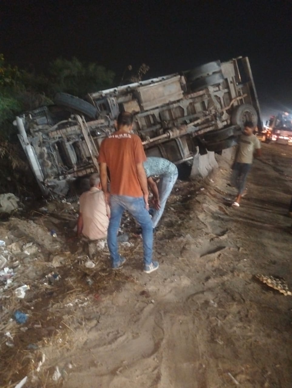 إصابة شخصين في انقلاب سيارة نقل اصطدمت بتروسيكل بالإسكندرية (صور)