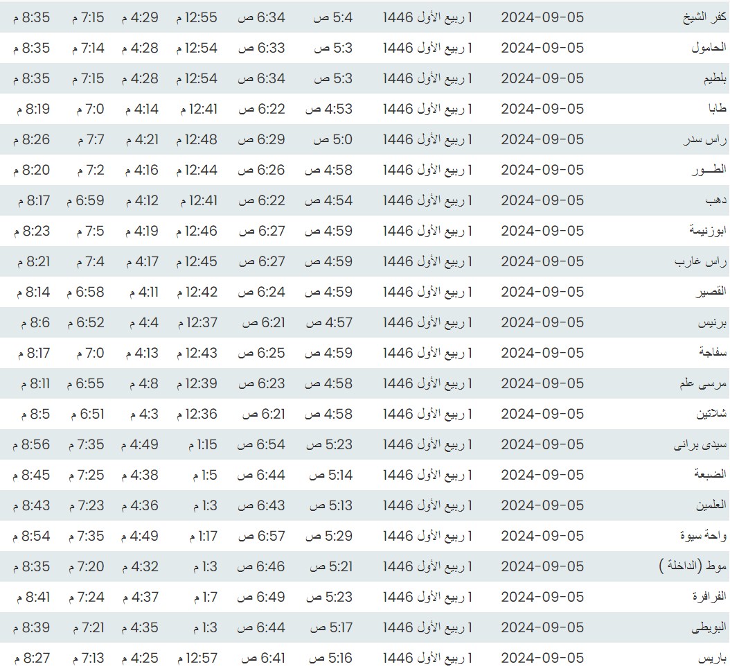 وفيما يلي مواقيت الصلاة، لعدد من مدن ومحافظات الجمهورية من واقع بيانات الهيئة العامة للمساحة
