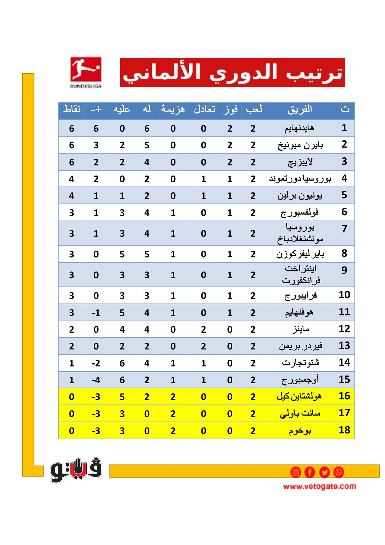 ترتيب الدوري الألماني بعد الجولة الثانية