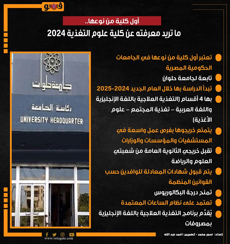 أول كلية من نوعها.. ما تريد معرفته عن كلية علوم التغذية 2024 (انفوجراف) الإثنين 02/سبتمبر/2024 - 04:30 م 9/2/2024 4:30:12 PM كلية علوم التغذية، فيتو سمر محمد شارك طباعة 18 حجم الخط شارك طباعة كلية علوم التغذية 2024 كلية علوم التغذية جامعة حلوان