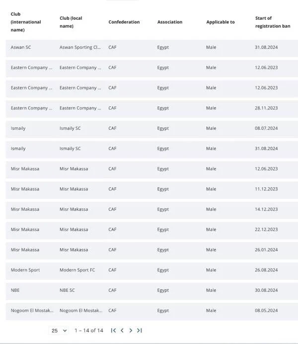 ونشر الفيفا عبر موقعه الرسمي، التحديث الأخير للأندية المعاقبة بإيقاف القيد خلال الفترة الحالية.