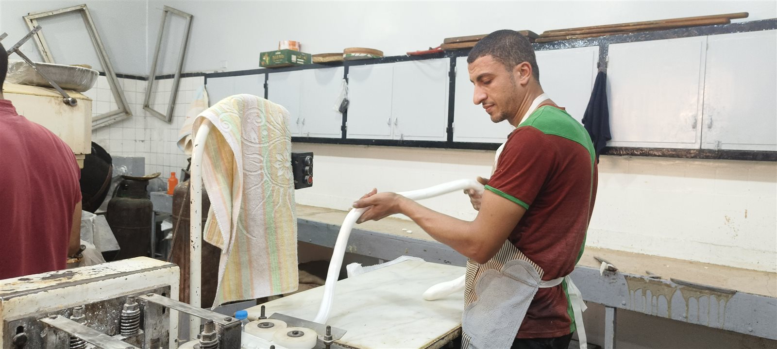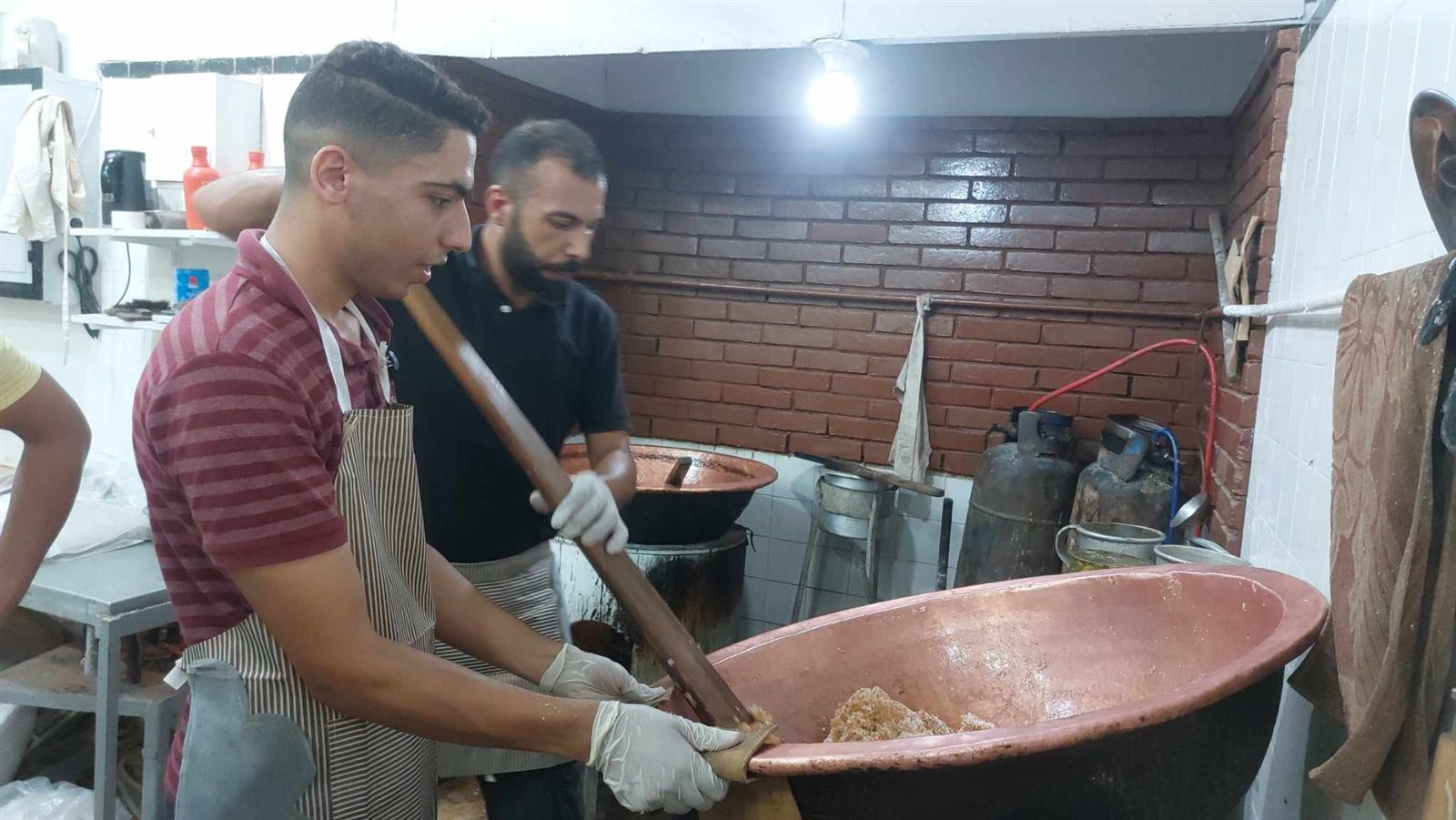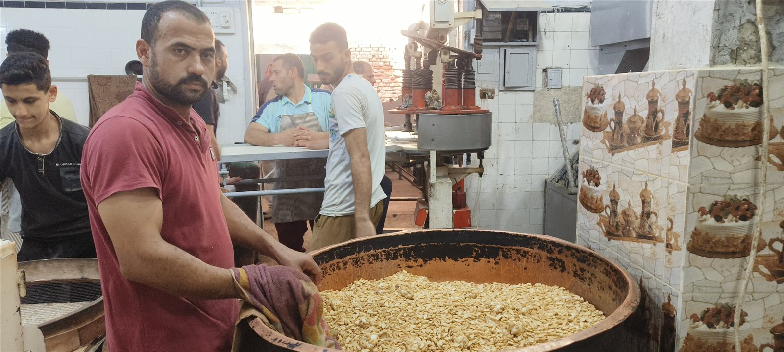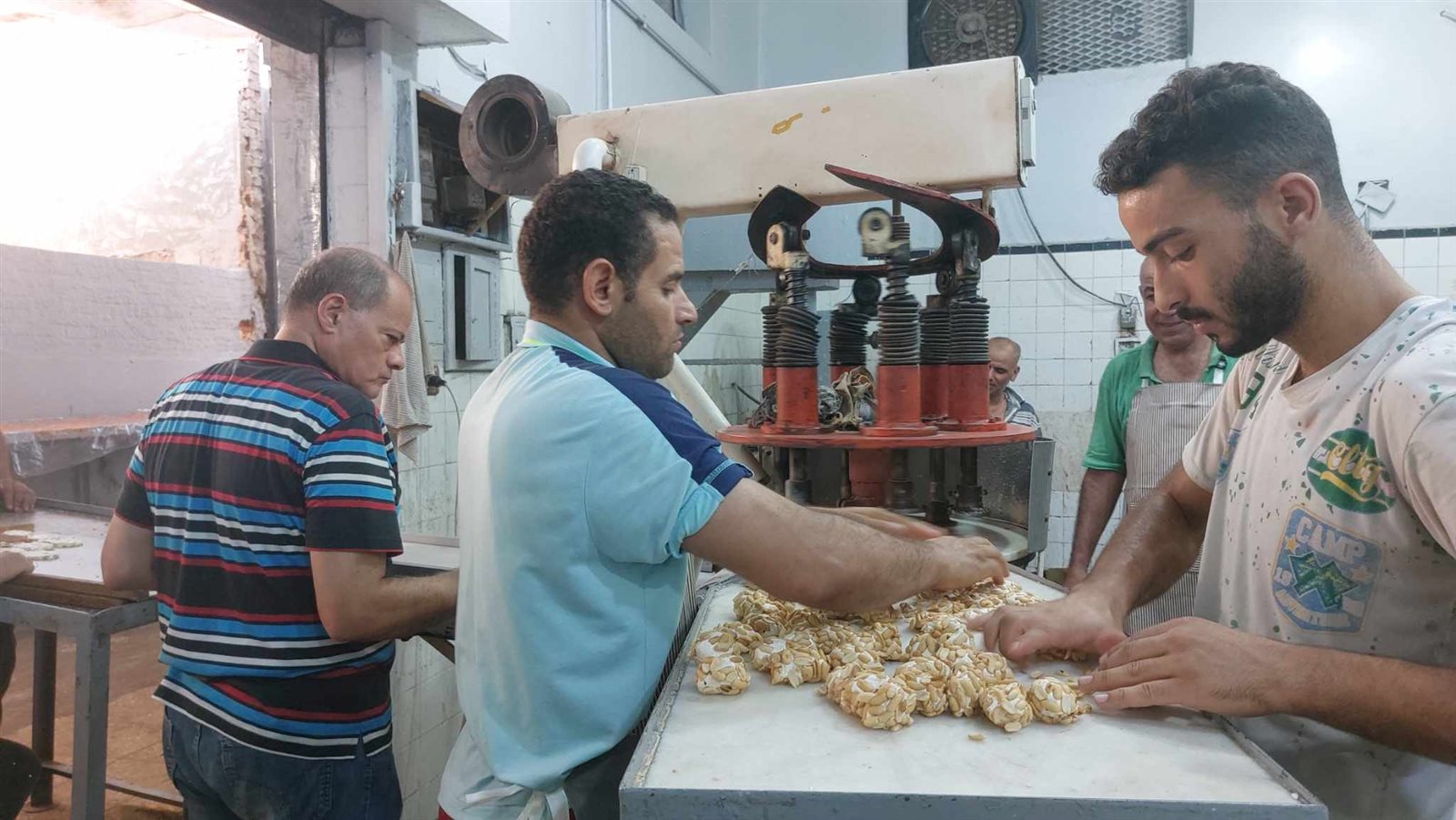 داخل المصنع خلية نحل تعمل في صمت تقوم بصناعة الحلوى في دقائق معدودة ثم بيعها.