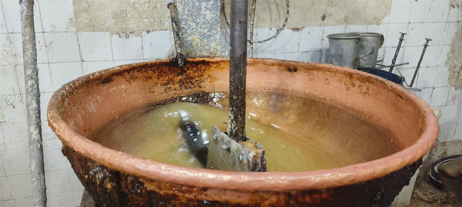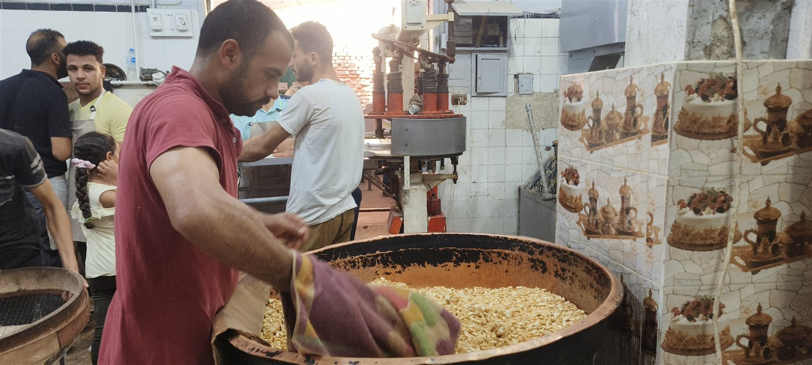 وقال رامي مجدي صاحب المصنع تأتي أولى مراحل التصنيع بتجهيز الفولية او السودانية او السمسمية او الفستقية علي المقلي وتجهيز العسل بالغلي ثم يتم خلطهما ببعض ومزجهما يعقبها مرحلة الفرد الفوري علي الرخامة تم تقطيعها وتغليفها وإعدادها للبيع.