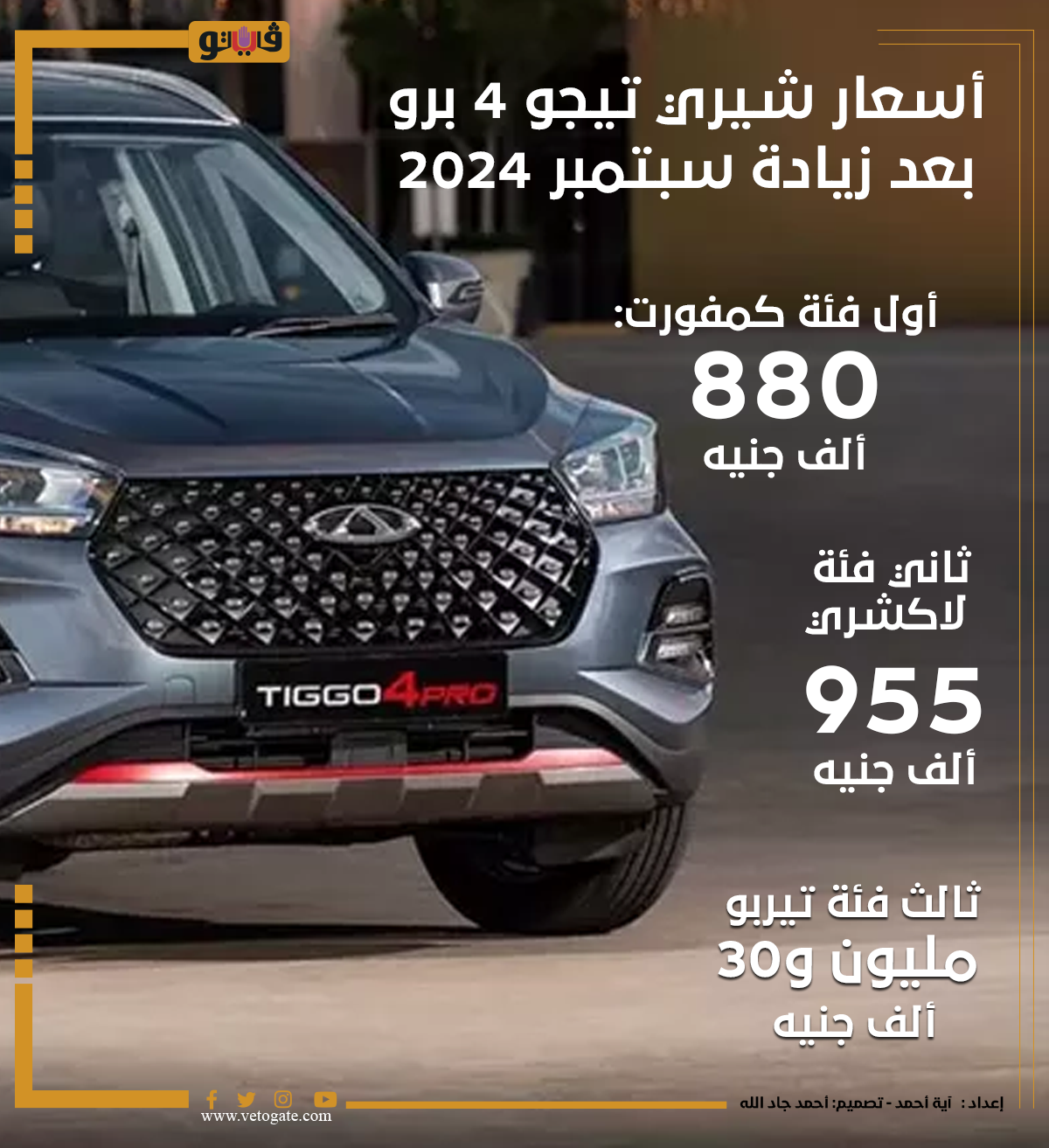 أسعار شيري تيجو 4 برو بعد زيادة سبتمبر 2024 (إنفوجراف) الثلاثاء 03/سبتمبر/2024 - 04:54 م 9/3/2024 4:54:19 PM سيارات آية أحمد شارك طباعة 18 حجم الخط شارك طباعة اخبار السياسة اسعار شيري أسعار اللحوم