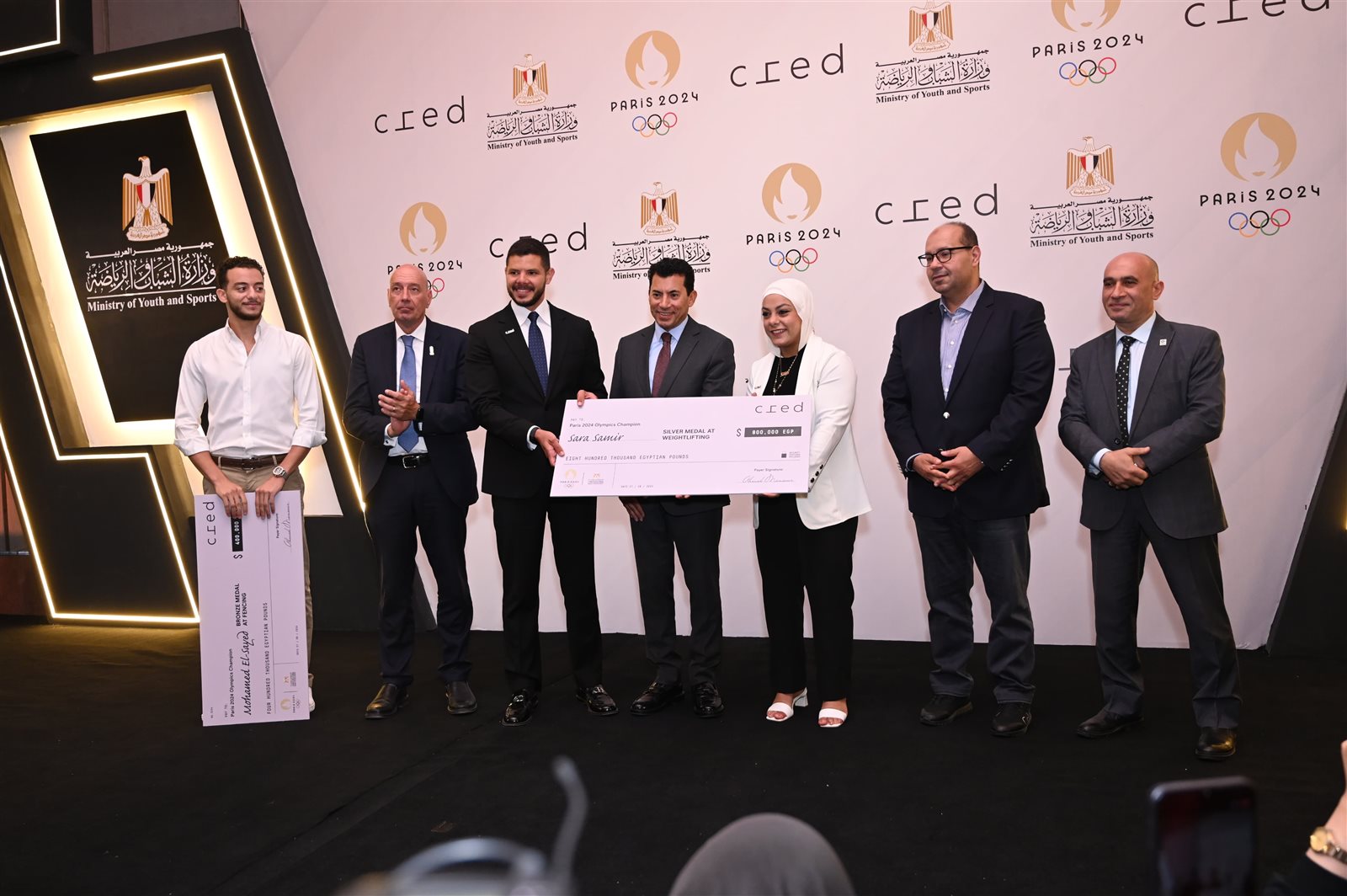 بينما تم منح اللاعبة سارة سمير صاحبة الميدالية الفضية جائزة مالية قيمتها 4 ملايين و100 ألف جنيه (3 ملايين من وزارة الشباب والرياضة، ومليون و100 ألف من اللجنة الأولمبية المصرية، 800 ألف جنيه من الشركة)، في حين حصل محمد السيد صاحب الميدالية البرونزية على جائزة مالية قيمتها 3 ملايين و400 ألف جنيه (2 مليون من وزارة الشباب والرياضة، مليون جنيه من اللجنة الأولمبية المصرية، 400 ألف جنيه من الشركة).