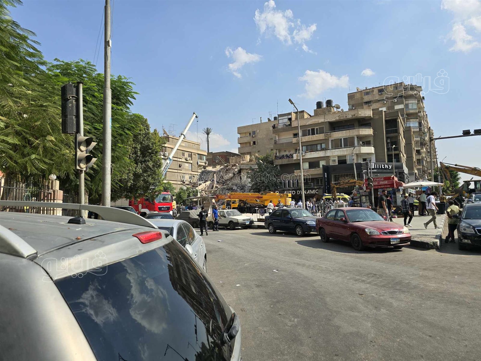 دفعت قوات الإنقاذ البرى بالقاهرة بمعدات ضخمة لرفع إنقاص المبنى المنهار بمنطقة النزهة، ويبحث رجال الإنقاذ عن محتجزين أسفل الأنقاض.
