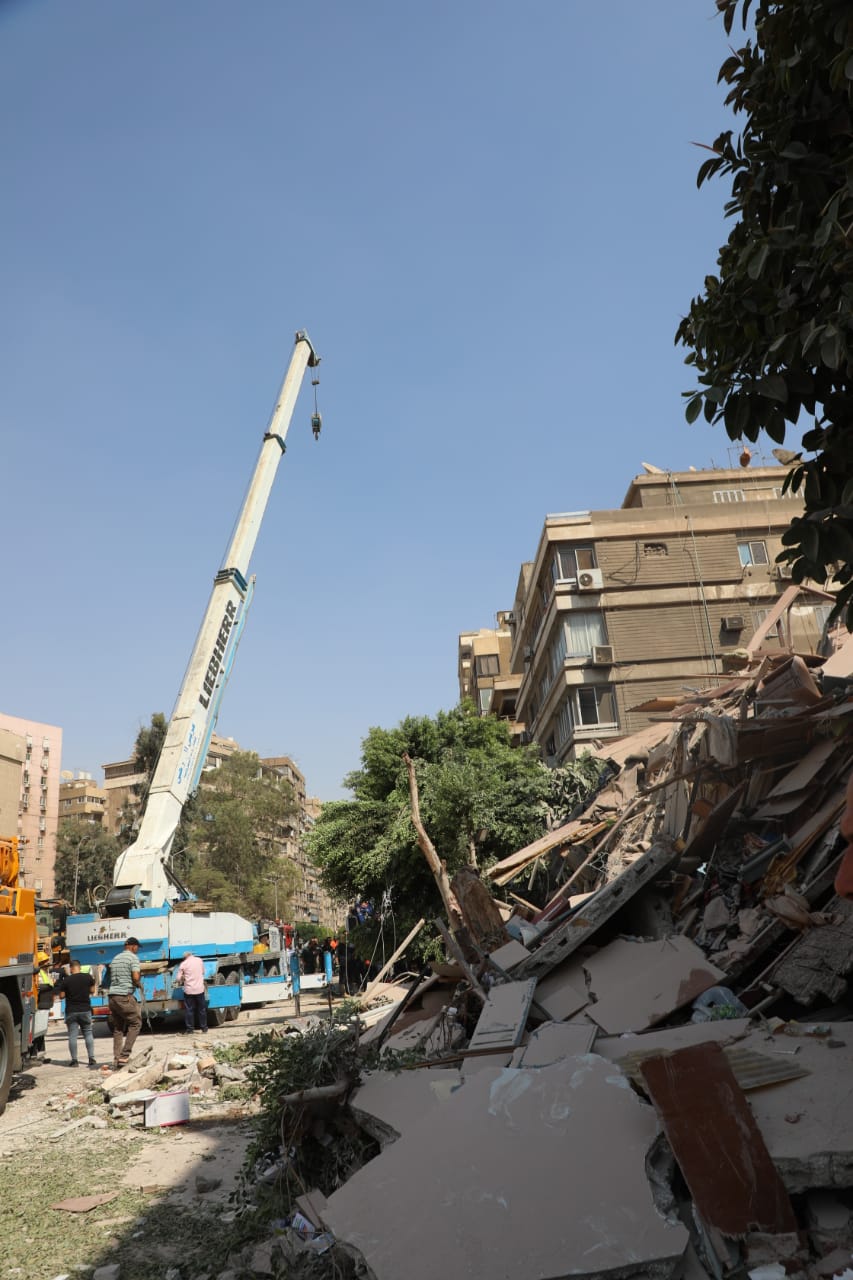 الدفع بمعدات هيئة النظافة والتجميل لرفع أنقاض عقار أرض الجولف المنهار (صور)