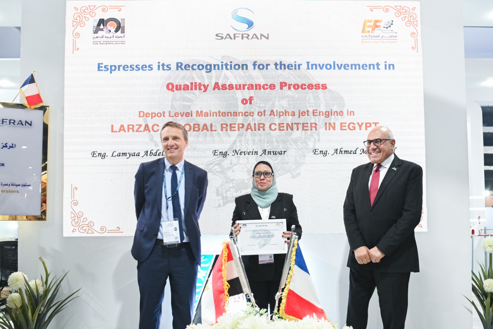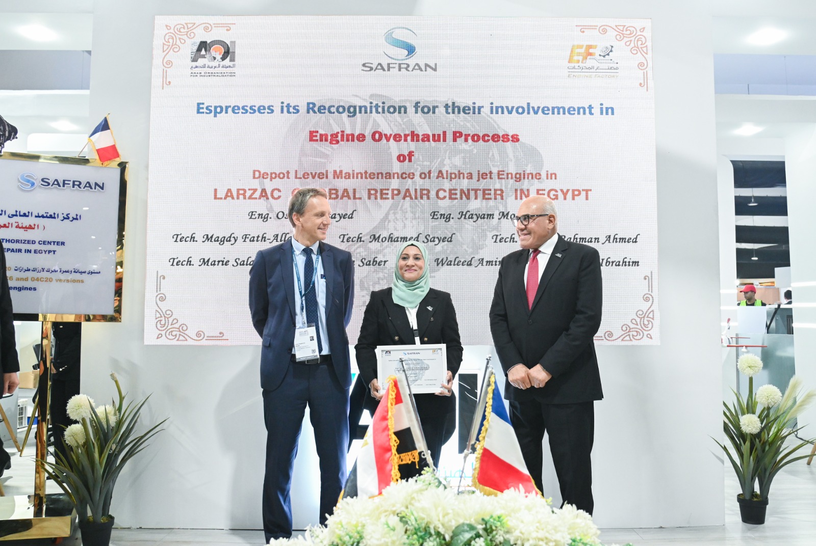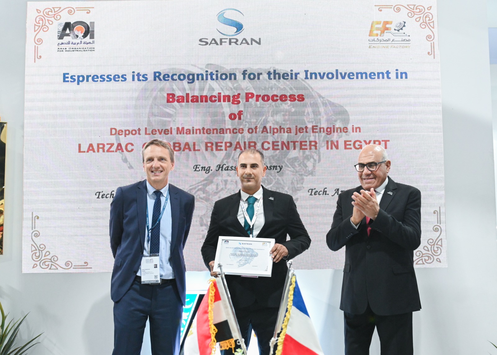 شهد اللواء مهندس "مختار عبد اللطيف" رئيس الهيئة العربية للتصنيع، والفريق "محمود فؤاد" قائد القوات الجوية , السفير " إيريك شوفالييه " سفير فرنسا بالقاهرة, السيد "كريستوفيه برونويه" نائب رئيس الشركة والمدير العام لشركة سافران SAFRAN الفرنسية، إنجازا جديدا للصناعة المصرية، باعتماد مجموعة شركات سافران للمحركات الفرنسية لمصنع المحركات التابع للهيئة العربية للتصنيع كمركز دولي وحيد لعمرة محركات اللارزاك للطائرة ألفاجيت.