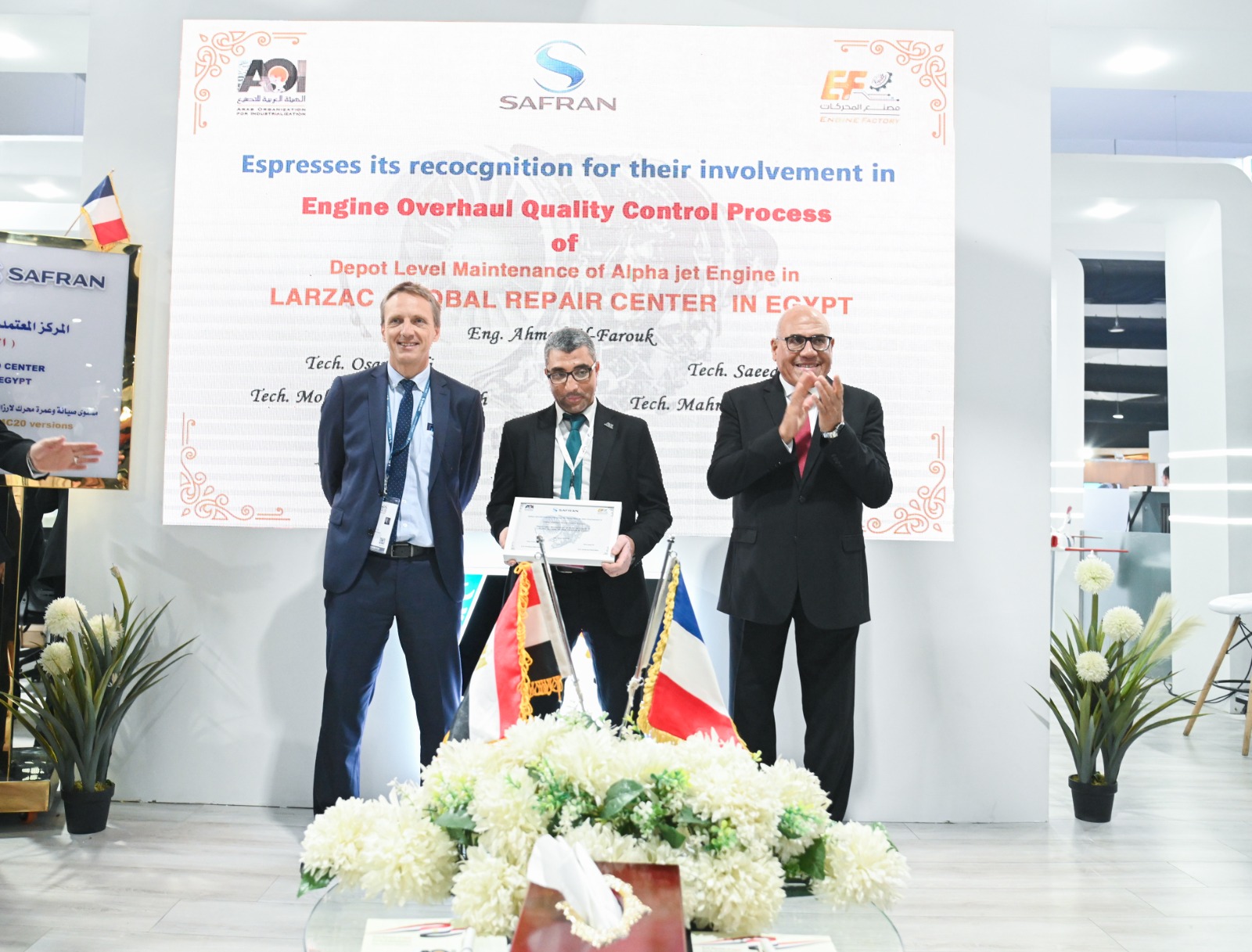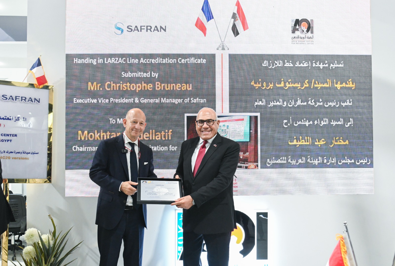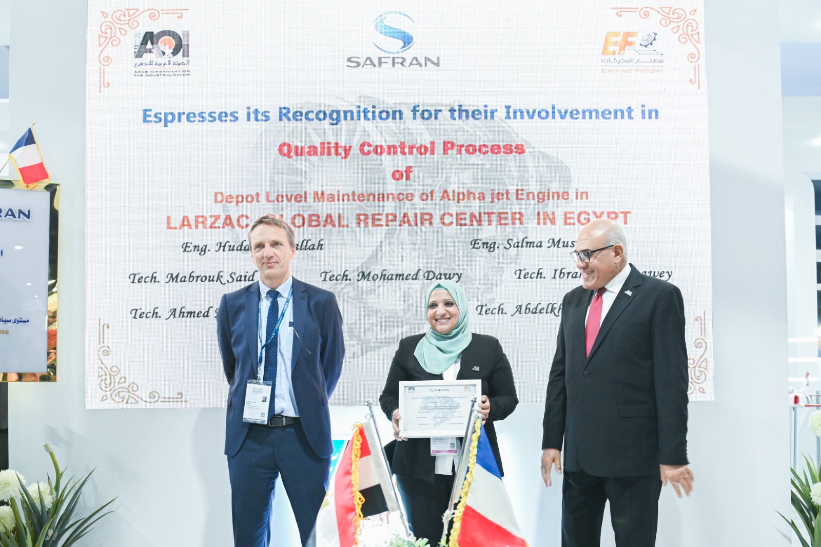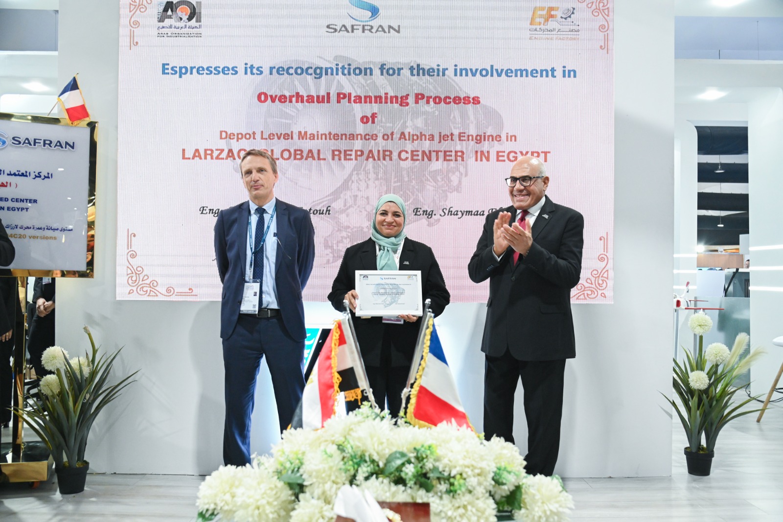 شهد اللواء مهندس "مختار عبد اللطيف" رئيس الهيئة العربية للتصنيع، والفريق "محمود فؤاد" قائد القوات الجوية , السفير " إيريك شوفالييه " سفير فرنسا بالقاهرة, السيد "كريستوفيه برونويه" نائب رئيس الشركة والمدير العام لشركة سافران SAFRAN الفرنسية، إنجازا جديدا للصناعة المصرية، باعتماد مجموعة شركات سافران للمحركات الفرنسية لمصنع المحركات التابع للهيئة العربية للتصنيع كمركز دولي وحيد لعمرة محركات اللارزاك للطائرة ألفاجيت.