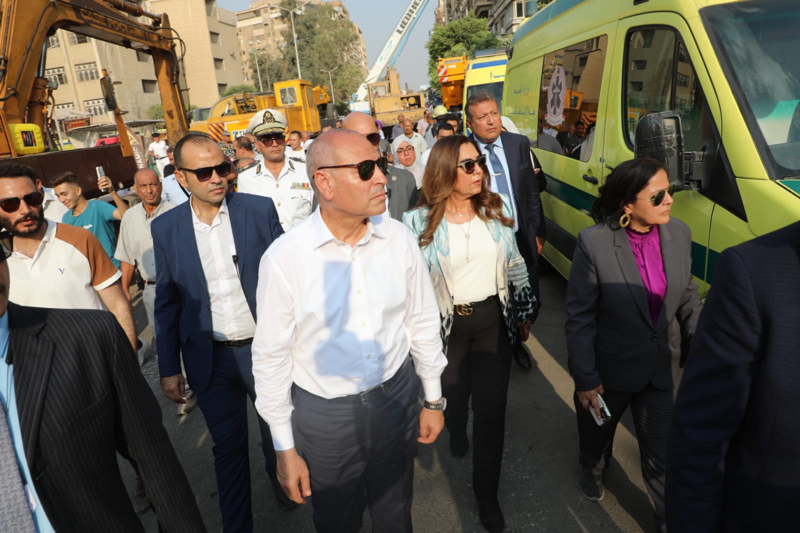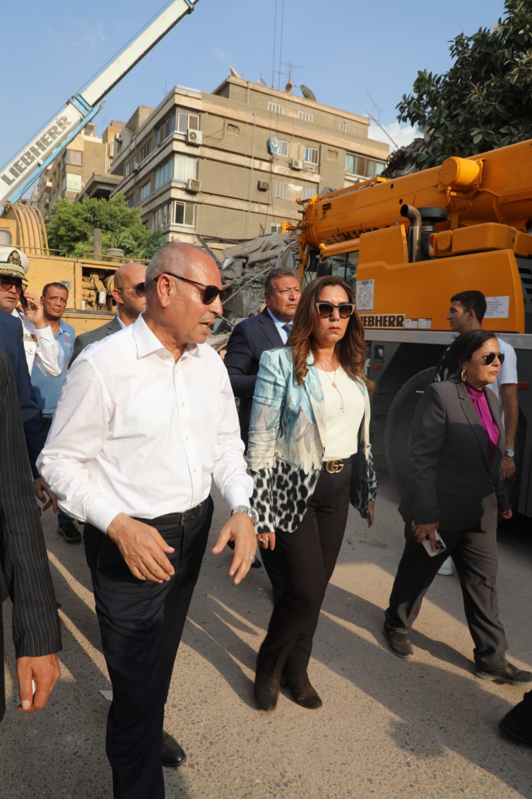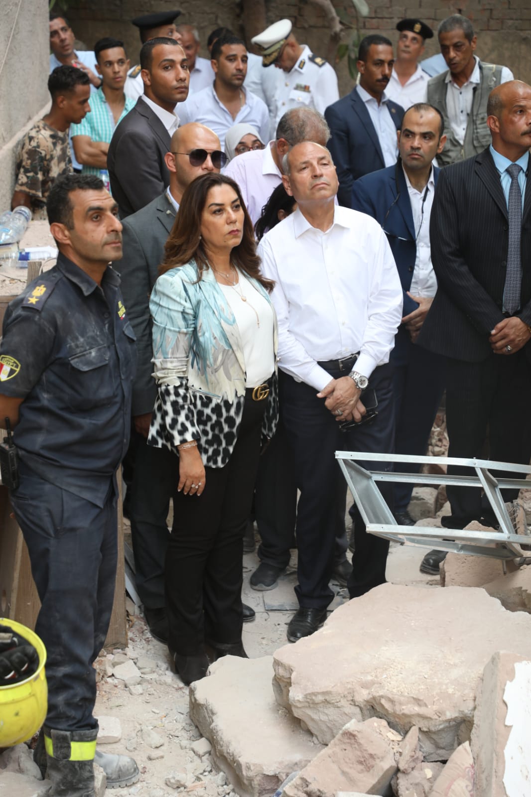 وقامت وزيرة التنمية المحلية بالإشراف مع محافظ القاهرة علي عمليات إنقاذ بعض سكان العقار المتواجدين تحت الأنقاض ومتابعة أعمال الإنفاذ التي تتم يدويًا حرصًا علي حياة الناجين من السكان.