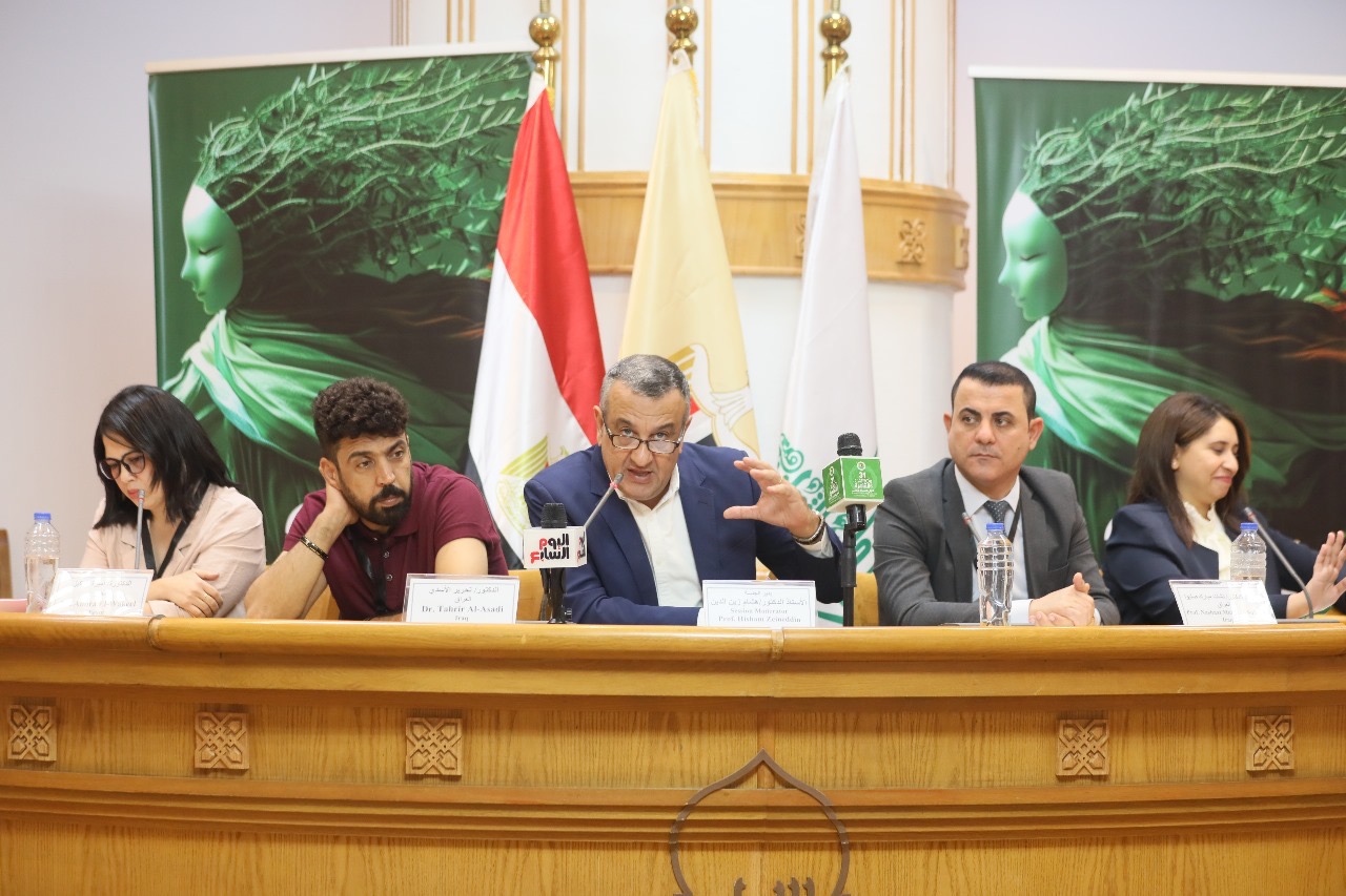 وتابع: فهي تسعى دائمًا لإبعاد الأفكار التي تسبب أزمة في توسعها مثل الدين، فالعولمة موضوع ثقافي يراها البعض هي تحالف الغرب ضد الثقافات الأخرى، مفهوم الجسد الآن في الغرب يختلف عن مفهوم الجسد لدينا، وبعض المخرجين يحاولون تقديم مفهوم الجسد في أوربا،ويجب الإشارة انه لا وجود لمسرح العولمة ولكن يوجد عولمة المسرح الذي يسعى لخلق مجتمعات استهلاكية، العولمة في نهاية الأمر هي اكتساح أشياء معينة لا تشمل فقط السلع بل الثقافة والفن كذلك.