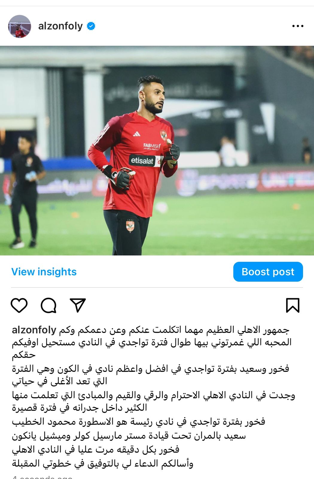 الأهلي، وجه محمود الزنفلي حارس مرمى الأهلي السابق المنضم حديثًا إلى صفوف حرس الحدود رسالة إلى جماهير النادي الأهلي بعد انتهاء إعارته إلى القلعة الحمراء جاءت على النحو التالي: