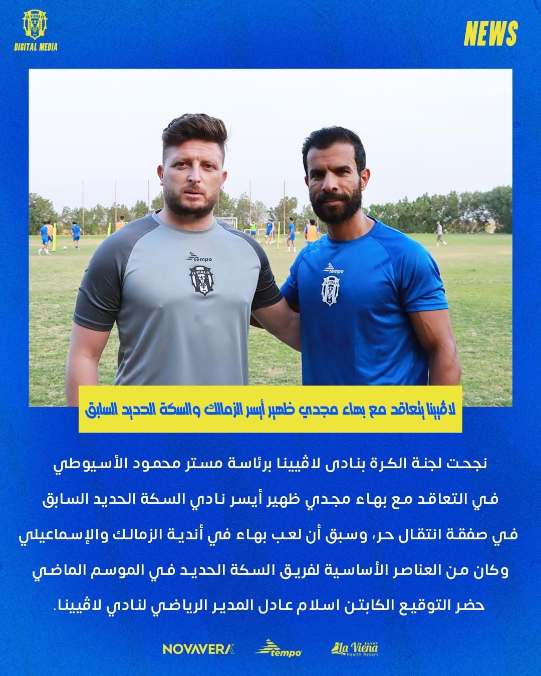 وقال في بيان له: “نجحت لجنة الكرة بنادى لاڤيينا برئاسة محمود الأسيوطي في التعاقد مع بهاء مجدى ظهير أيسر نادي السكة الحديد السابق في صفقة انتقال حر”.
