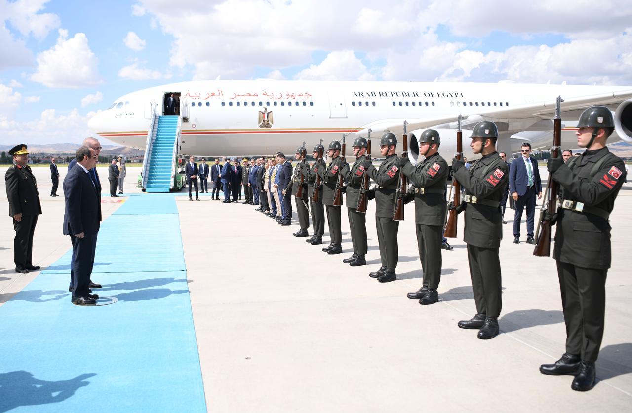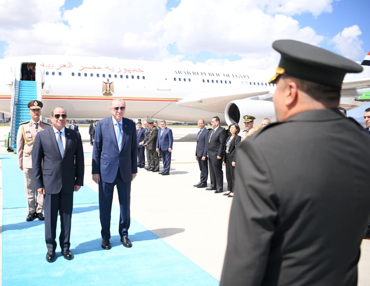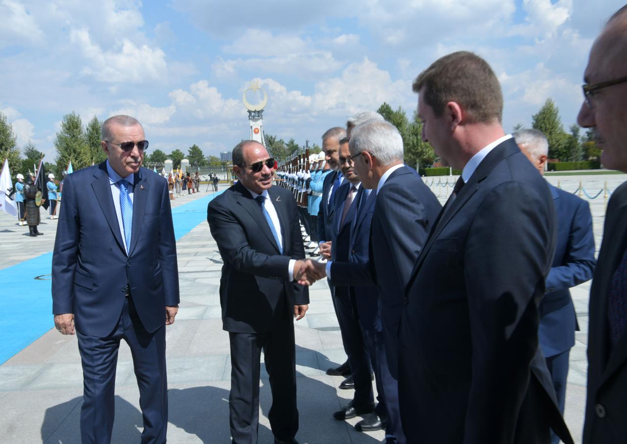 واستقبل الرئيس التركي رجب طيب أردوغان، الرئيس عبد الفتاح السيسي بمقر الرئاسة التركية بأنقرة، حيث أجريت مراسم الاستقبال الرسمية للرئيس السيسي، وعزفت موسيقى السلام الجمهوري المصري كما استعرض الرئيسان حرس الشرف وصافح الرئيسان كبار وفدى البلدين.