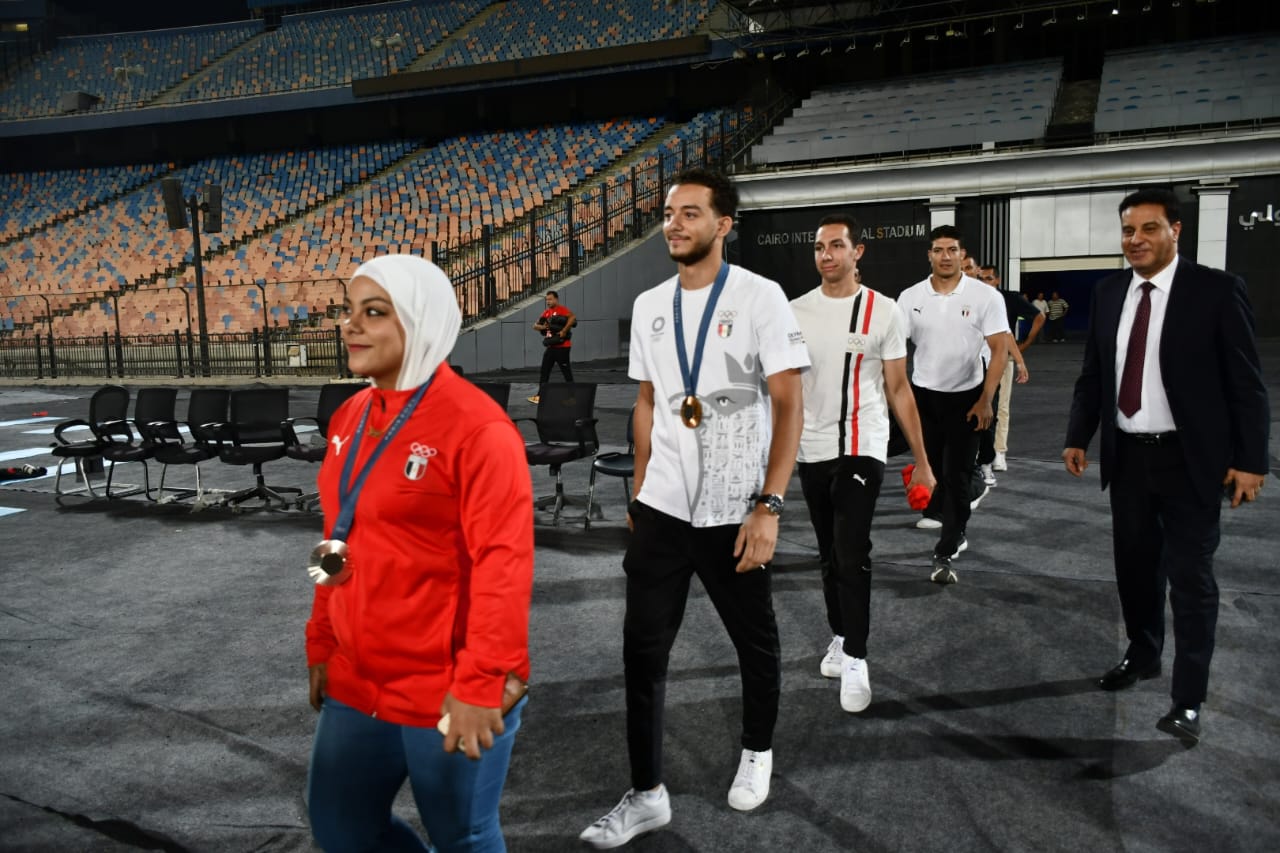 بحضور وزير الرياضة، ممر شرفي من لاعبي منتخب مصر لأبطال أولمبياد باريس (صور)