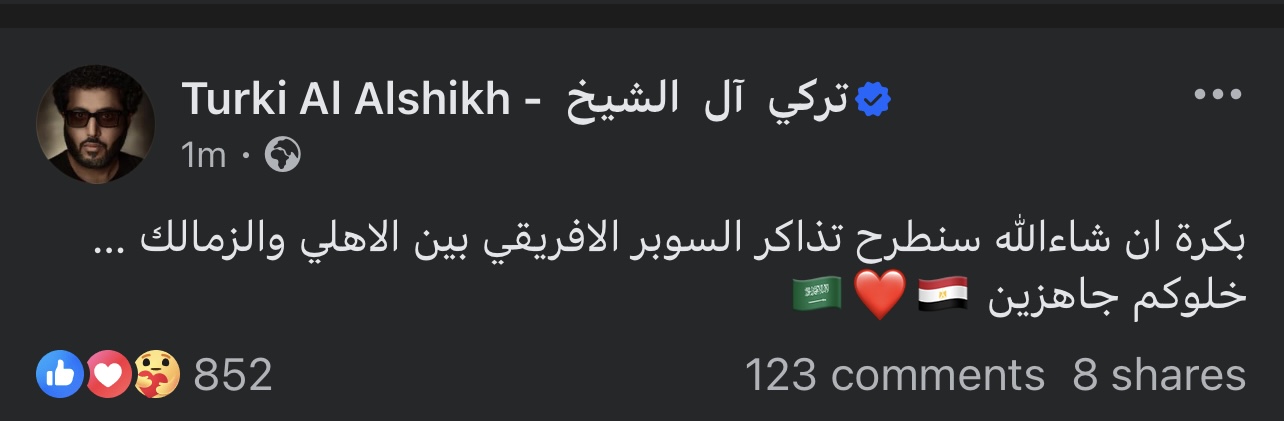 خليكم جاهزين، تركي آل الشيخ يعلن موعد طرح تذاكر السوبر الإفريقي