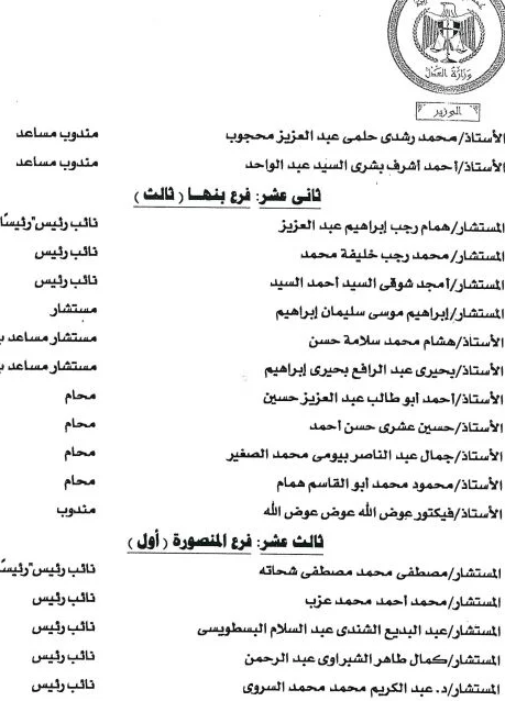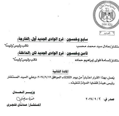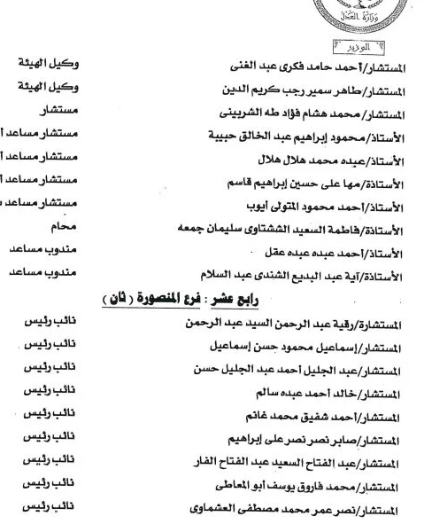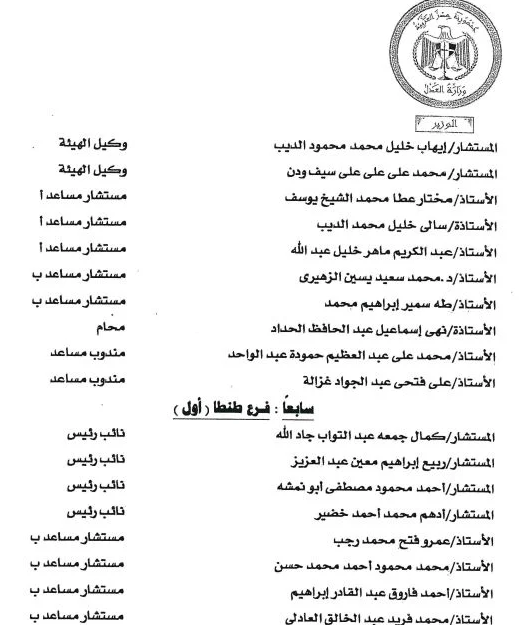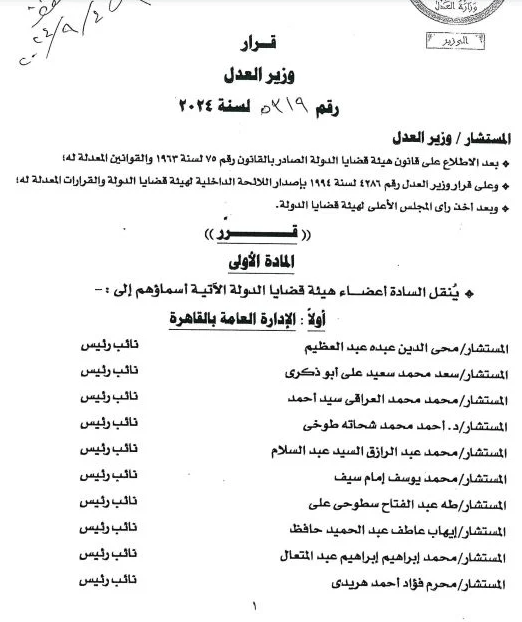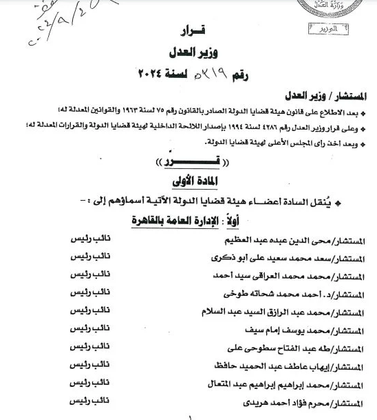 بالأسماء.. وزير العدل يعتمد الحركة القضائية لهيئة قضايا الدولة