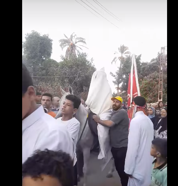 ظهور شبح ملفوف بقماش أبيض في المولد يثير الخوف، والنشطاء: زفة سيدي المستخبي (فيديو)